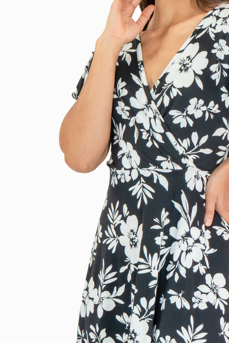 Este vestido de estampado floral en blanco y negro es la elección perfecta para cualquier ocasión. Con mangas cortas y un elegante escote en V, combina comodidad y estilo en un solo diseño. Su versatilidad te permite llevarlo tanto en un día casual como en una salida nocturna, asegurando que siempre luzcas fabulosa. ¡Hazlo tuyo y destaca con este imprescindible en tu guardarropa!