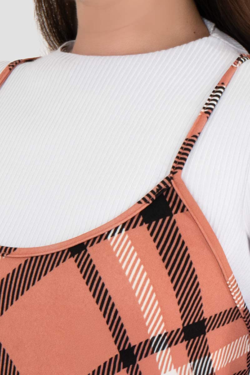 Conjunto de vestido de cuadros con playera manga larga