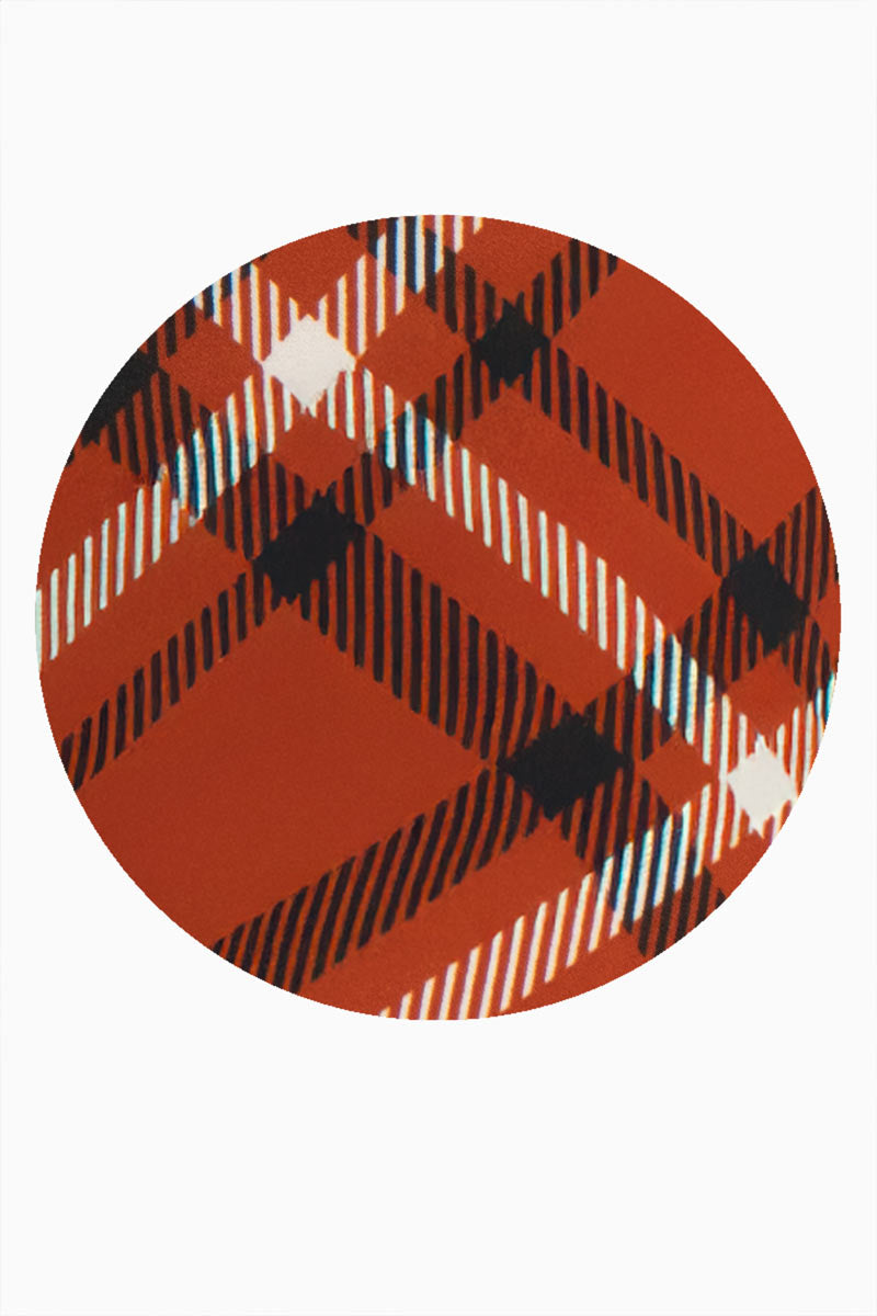 Diseño a cuadros en tonos terracota, negro y blanco