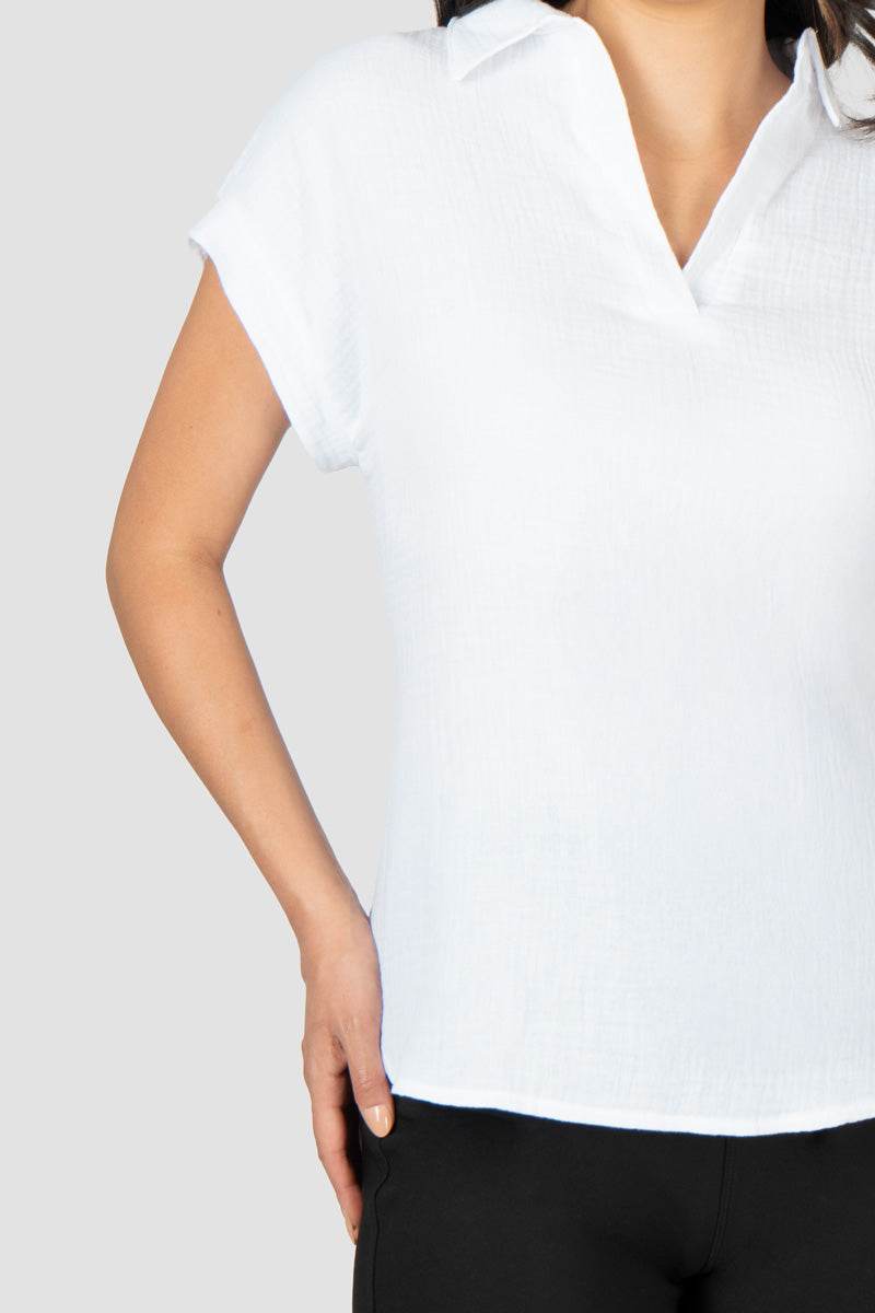 Blusa Blanca para Mujer Lisa Escote V Manga Corta