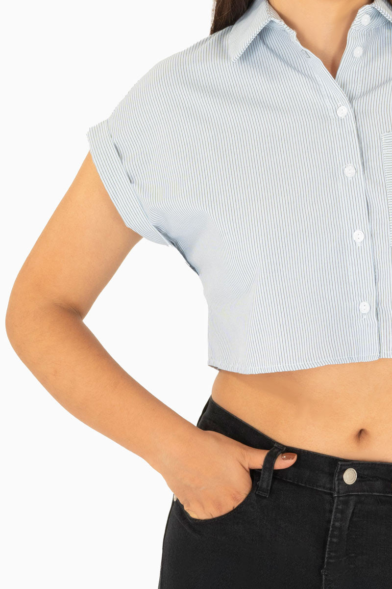 Camisa crop de rayas manga corta
