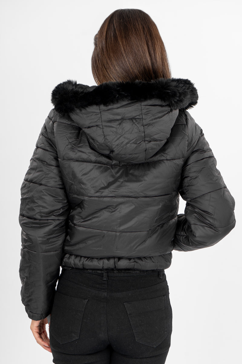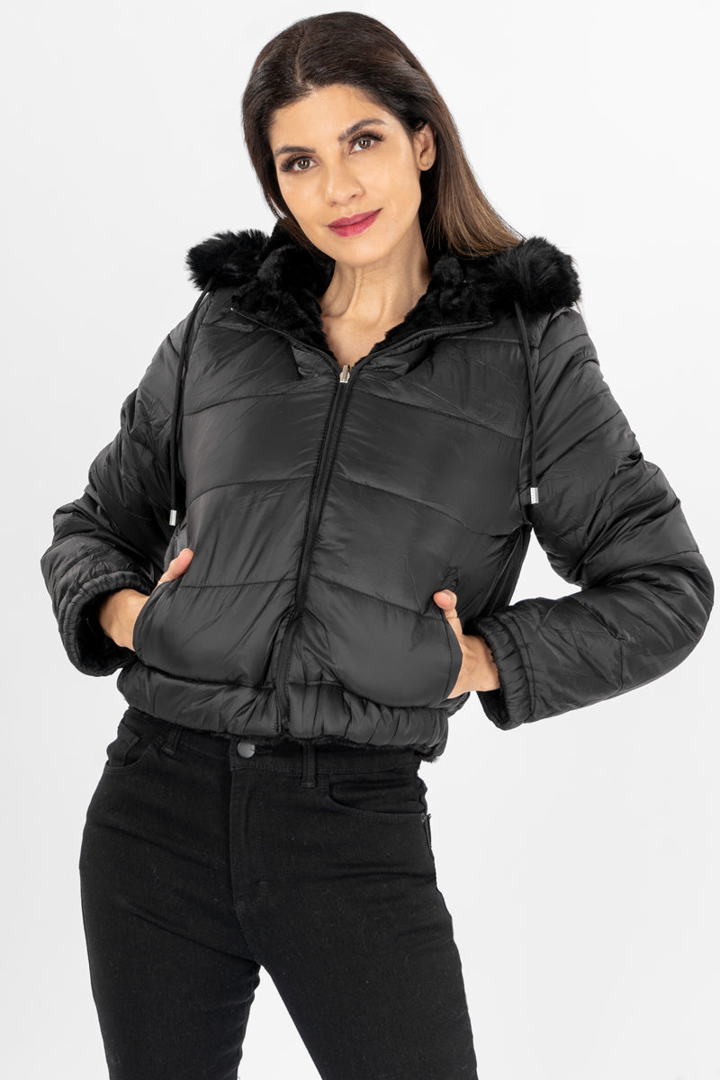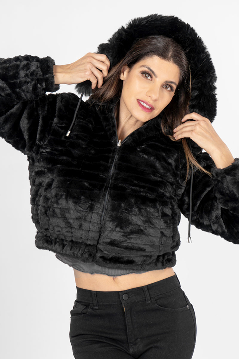 Chamarra reversible con capucha desmontable peluche.