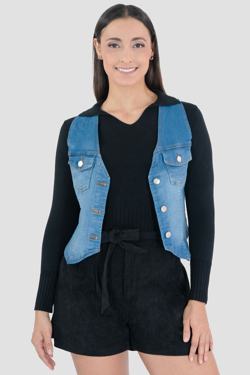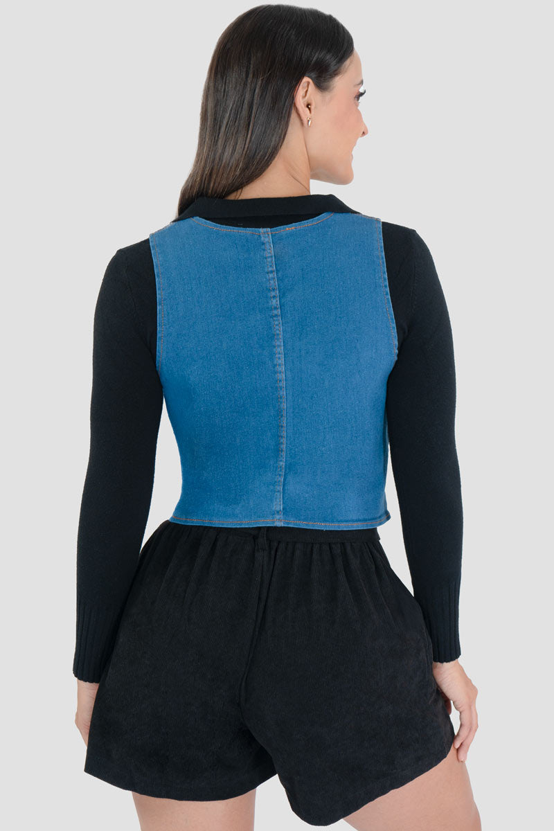 Chaleco corto de mezclilla con bolsas