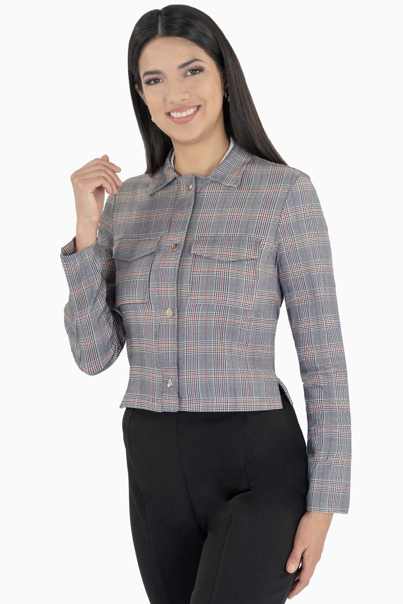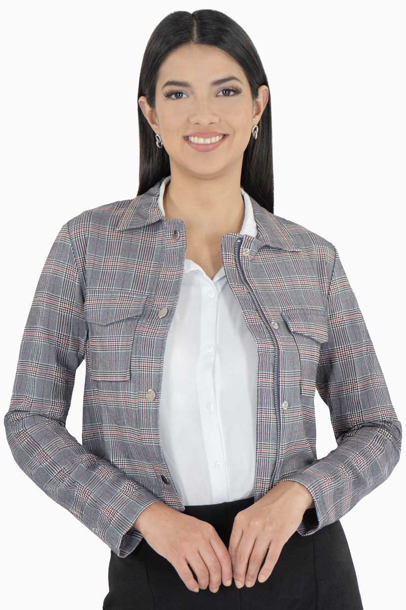 Incorpora un toque vintage y femenino a tu guardarropa con esta chamarra corta de cuadros para mujer. Su diseño clásico con botones metálicos y bolsillos frontales la convierte en una prenda clave para lograr un look casual chic. Ideal para días frescos de primavera u otoño, esta chaqueta combina perfectamente con jeans, pantalones de vestir o faldas. Su corte recto aporta una silueta favorecedora y versátil, perfecta para outfits de oficina o salidas informales con estilo.