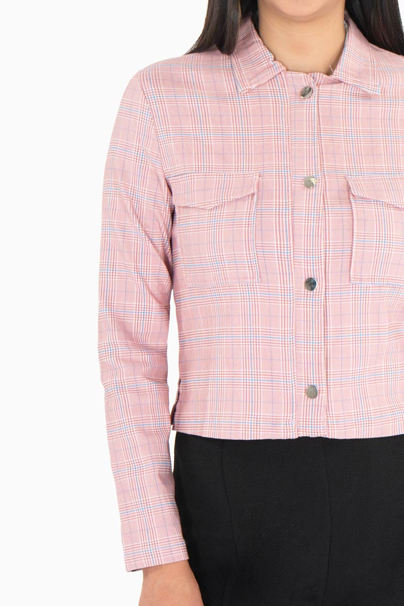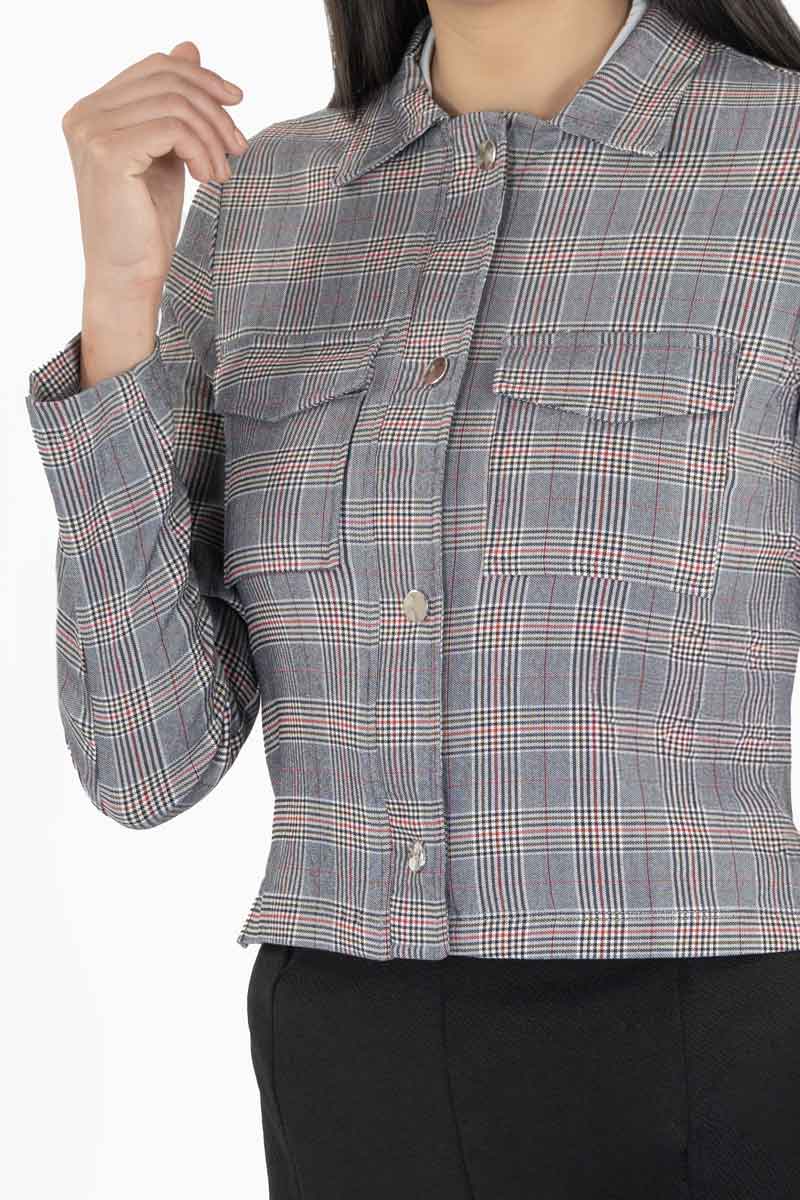Chamarra de cuadros y bolsas delanteras