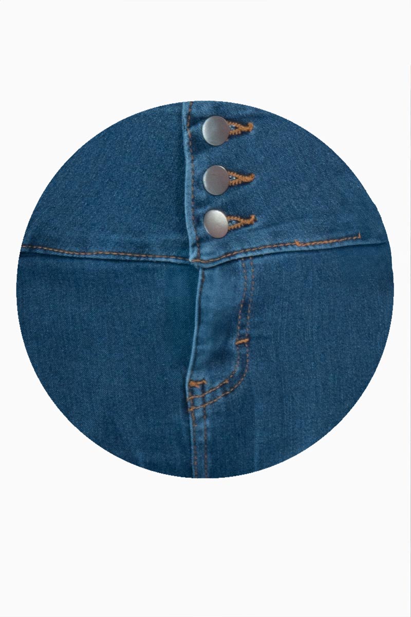 Los jeans azul skinny de tiro alto con triple botón son la opción perfecta para realzar tu figura con estilo y comodidad. Gracias a su pretina ancha con tres botones, proporcionan un ajuste firme que define la cintura y moldea el abdomen.