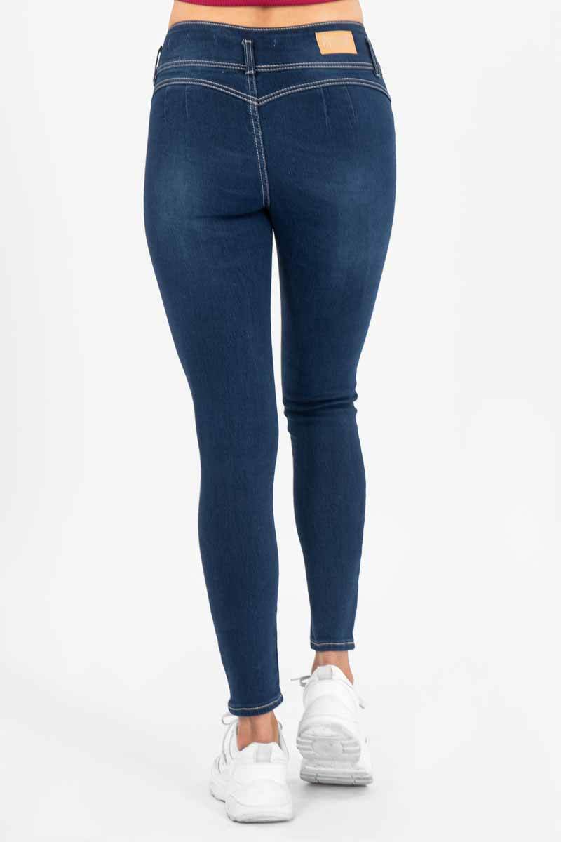Jeans pretina con 3 botones, tiro medio colombianos con pinzas traseras.
