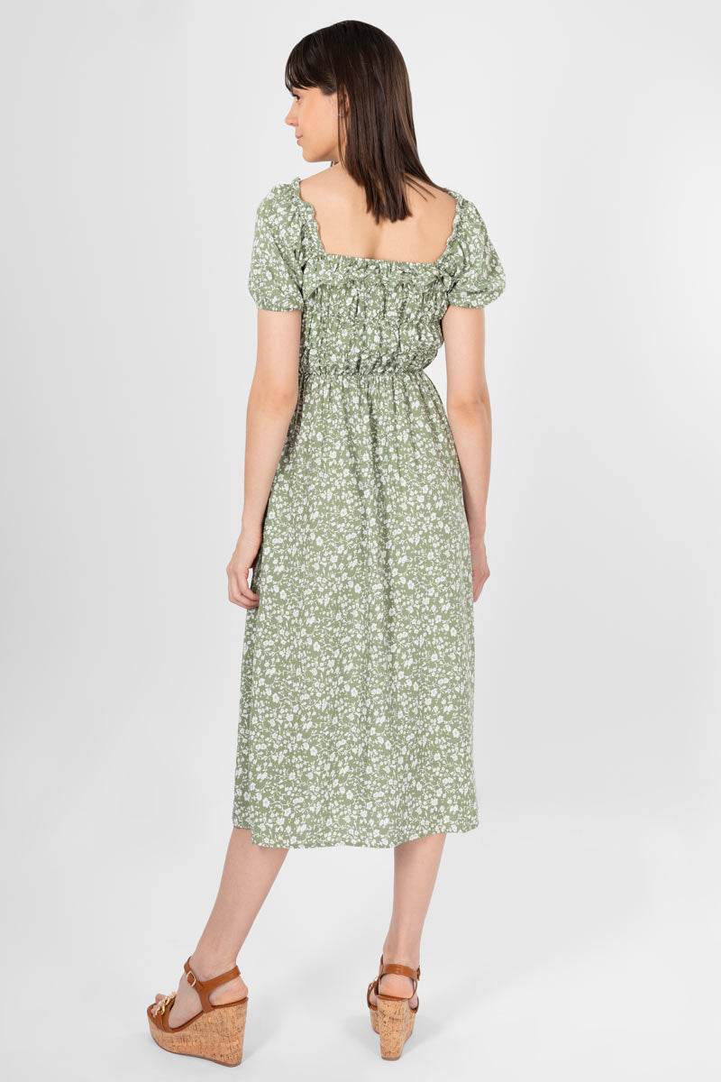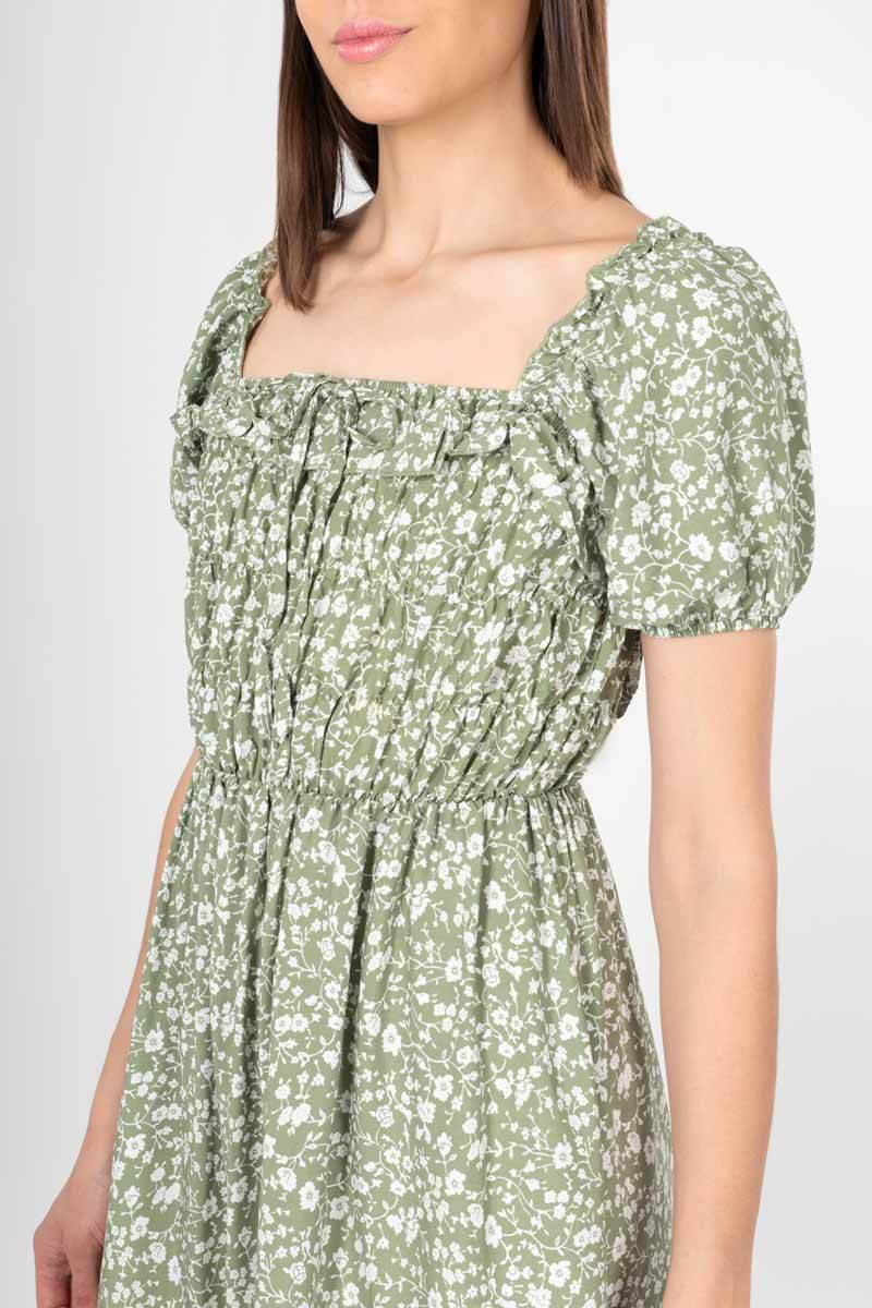 Vestido con estampado floral manga corta, escote cuadrado con amarre.