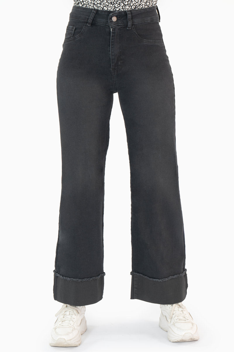 El jeans de mezclilla negro corte recto con dobladillo es la prenda ideal para quienes buscan un estilo versátil y moderno. Su diseño de tiro alto estiliza la figura, mientras que el corte recto brinda comodidad y libertad de movimiento.
