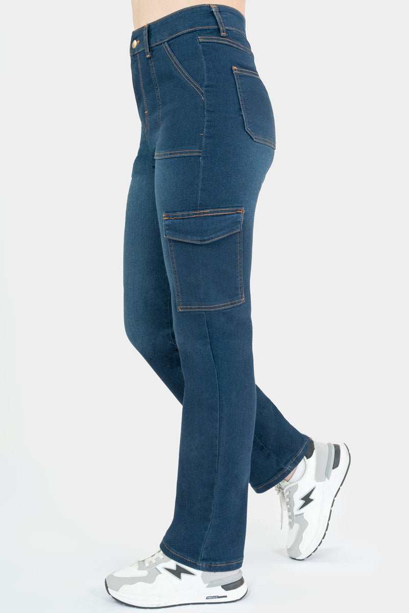 Los jeans cargo de mezclilla azul combinan practicidad y estilo urbano. Su diseño con bolsillos laterales amplios los hace funcionales y modernos, mientras que el corte recto y el tiro alto estilizan la figura. Perfectos para outfits casuales y relajados, estos jeans pueden usarse con playeras, blusas o chamarras para un look cómodo y en tendencia. Una prenda versátil que se adapta a distintos estilos y ocasiones.