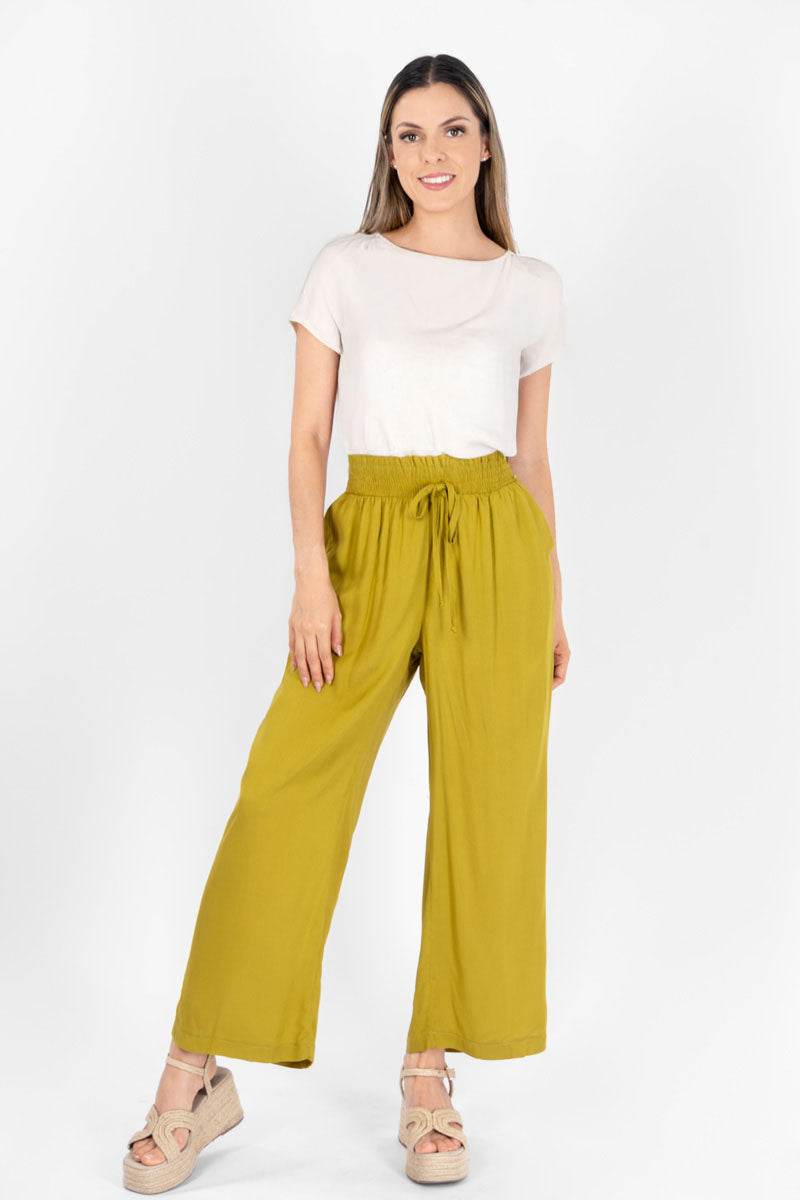 Pantalón pierna ancha liso.