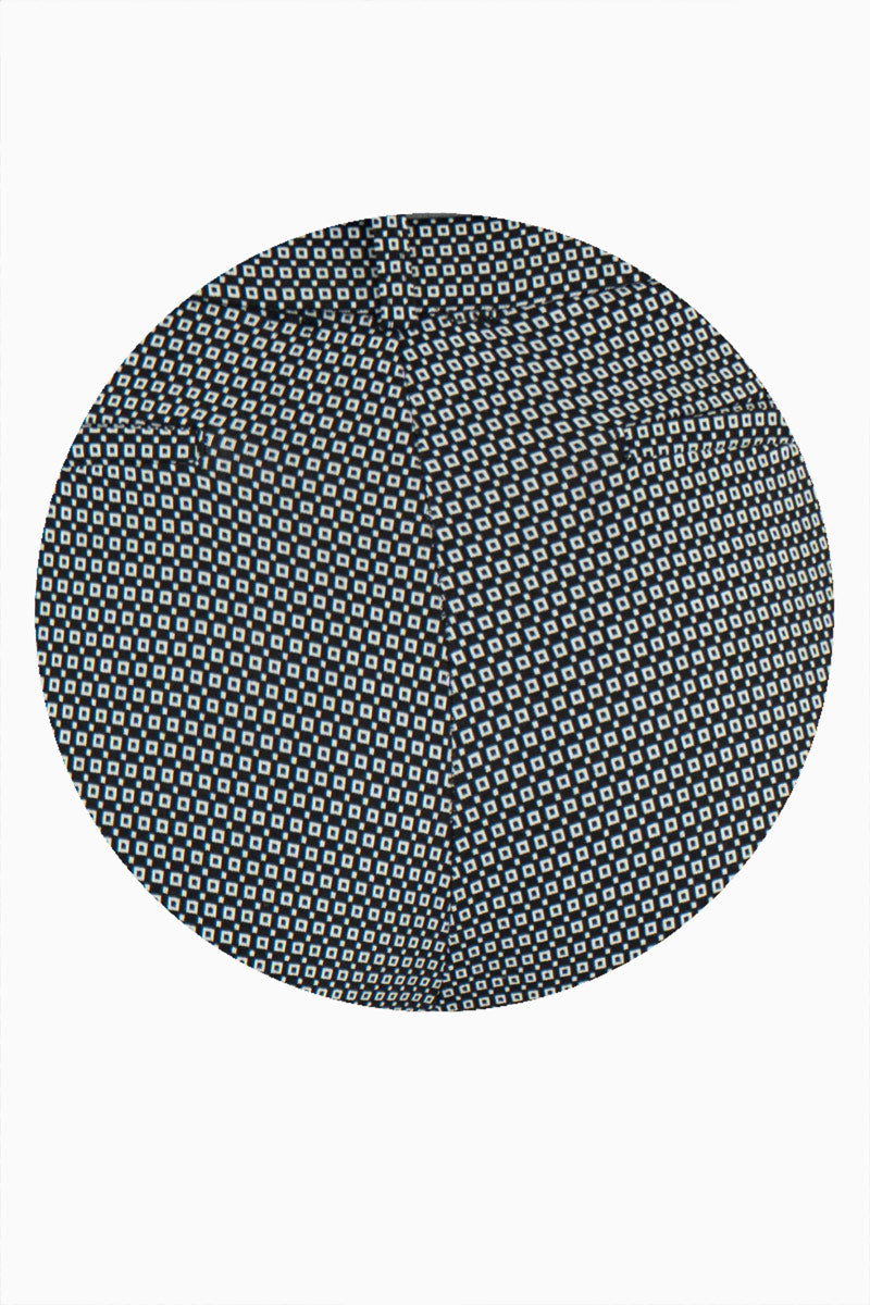 Este pantalón estampado es una prenda versátil y moderna que aporta dinamismo a cualquier atuendo. Su corte ajustado al cuerpo y diseño hasta el tobillo estilizan la figura, mientras que el estampado en blanco y negro lo hace ideal para looks creativos y urbanos.