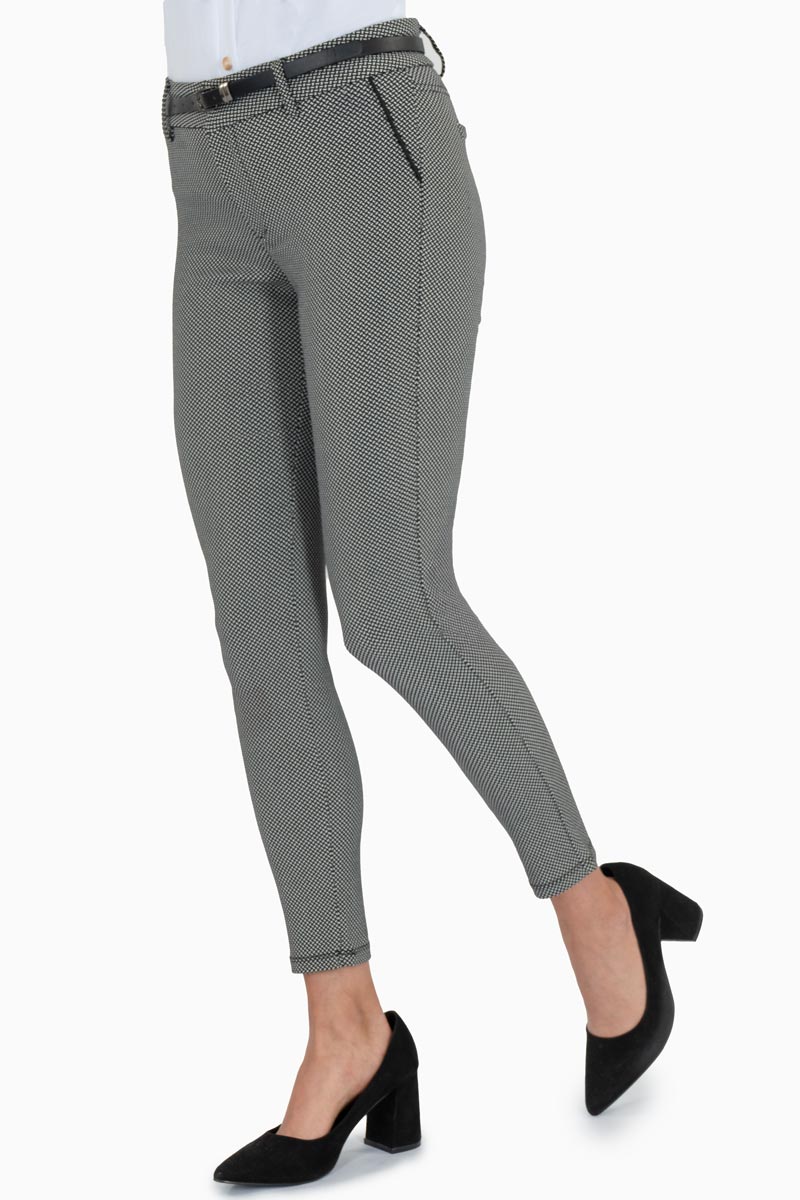 Actualiza tu guardarropa con estos elegantes pantalones slim fit para mujer con microestampado, ideales para combinar estilo y profesionalismo. Su diseño ajustado realza la figura, mientras que su tela con elasticidad ofrece máxima comodidad durante todo el día. El microestampado en blanco y negro agrega un toque moderno sin perder sobriedad, haciéndolos perfectos para la oficina, reuniones o incluso salidas casuales con tacones o flats.