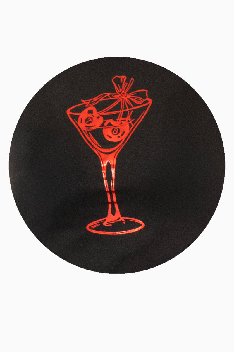 • Color negro con estampado en rojo de copa de cóctel.