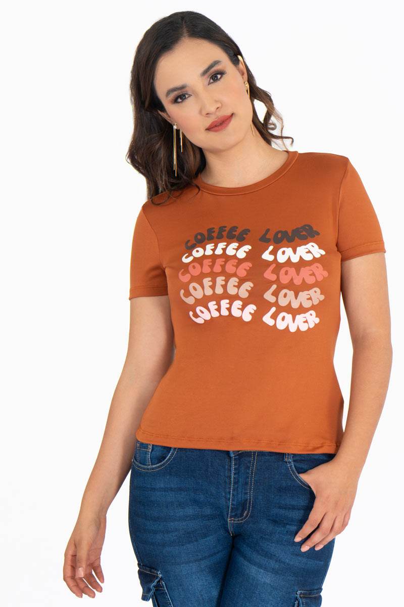 Playera estampada manga corta y cuello redondo.