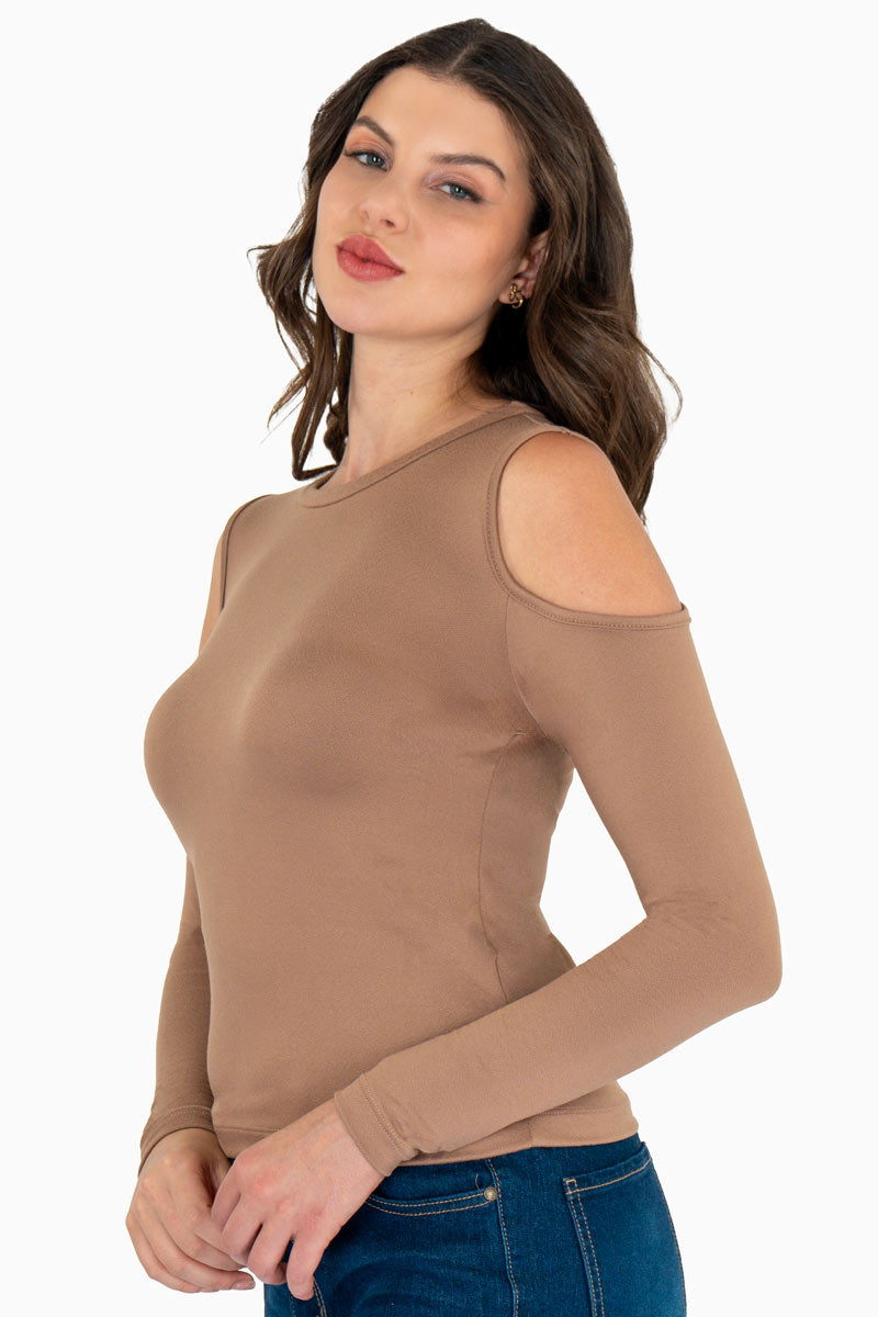 Playera manga larga con hombros descubiertos