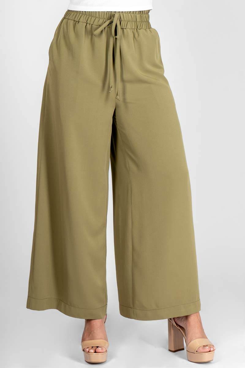 Pantalón liso con elástico y bolsas