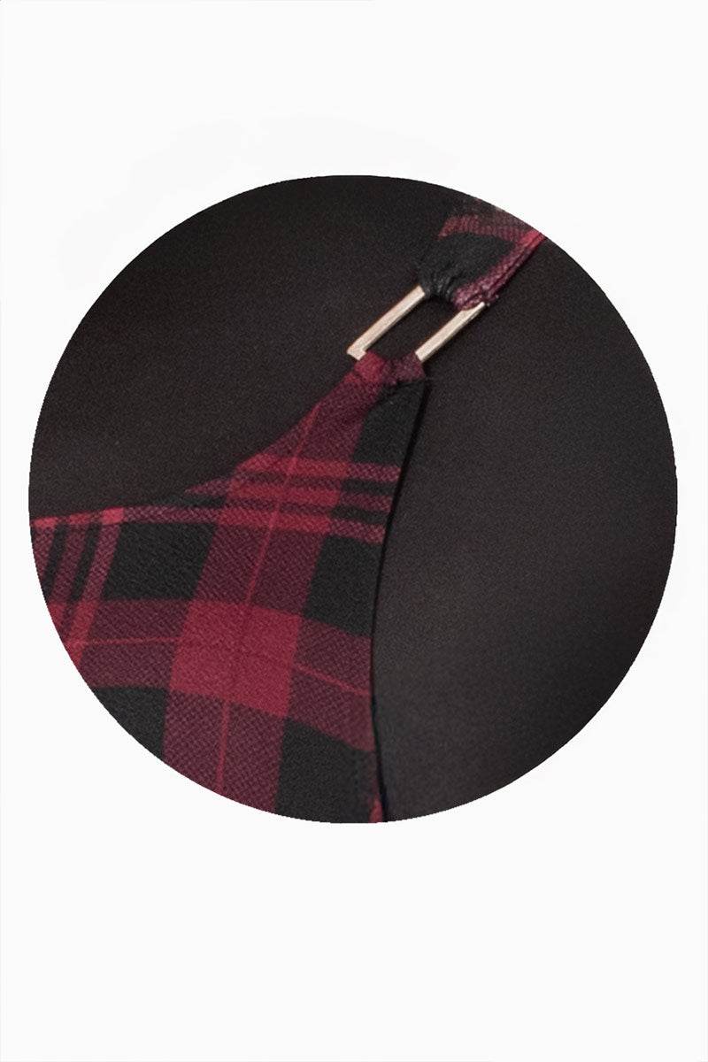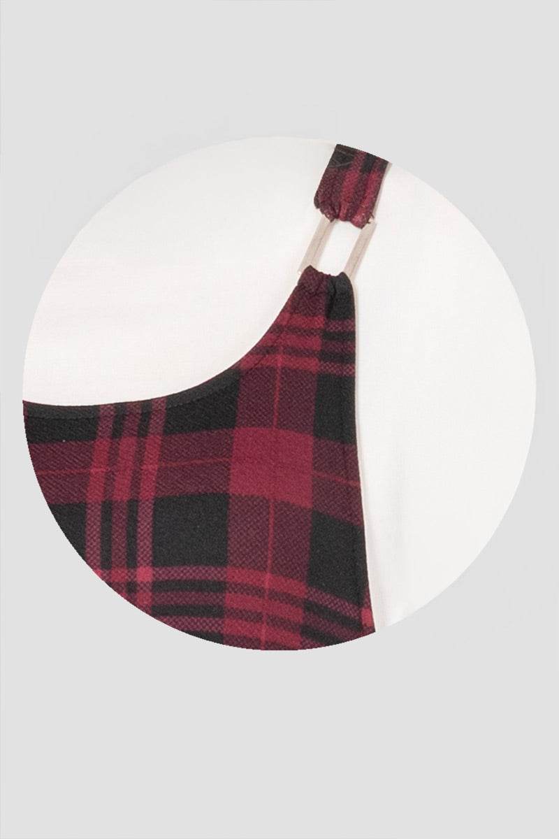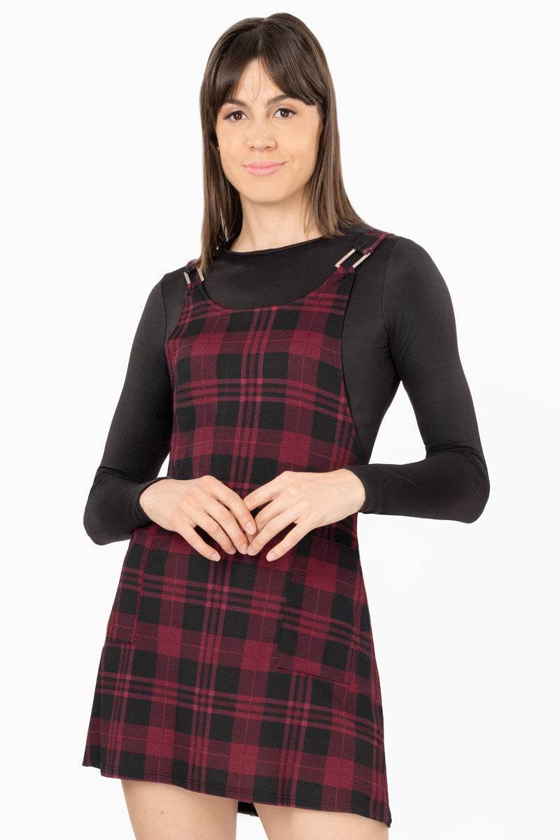 Conjunto, vestido tipo peto con bolsas y estampado de cuadros con playera.
