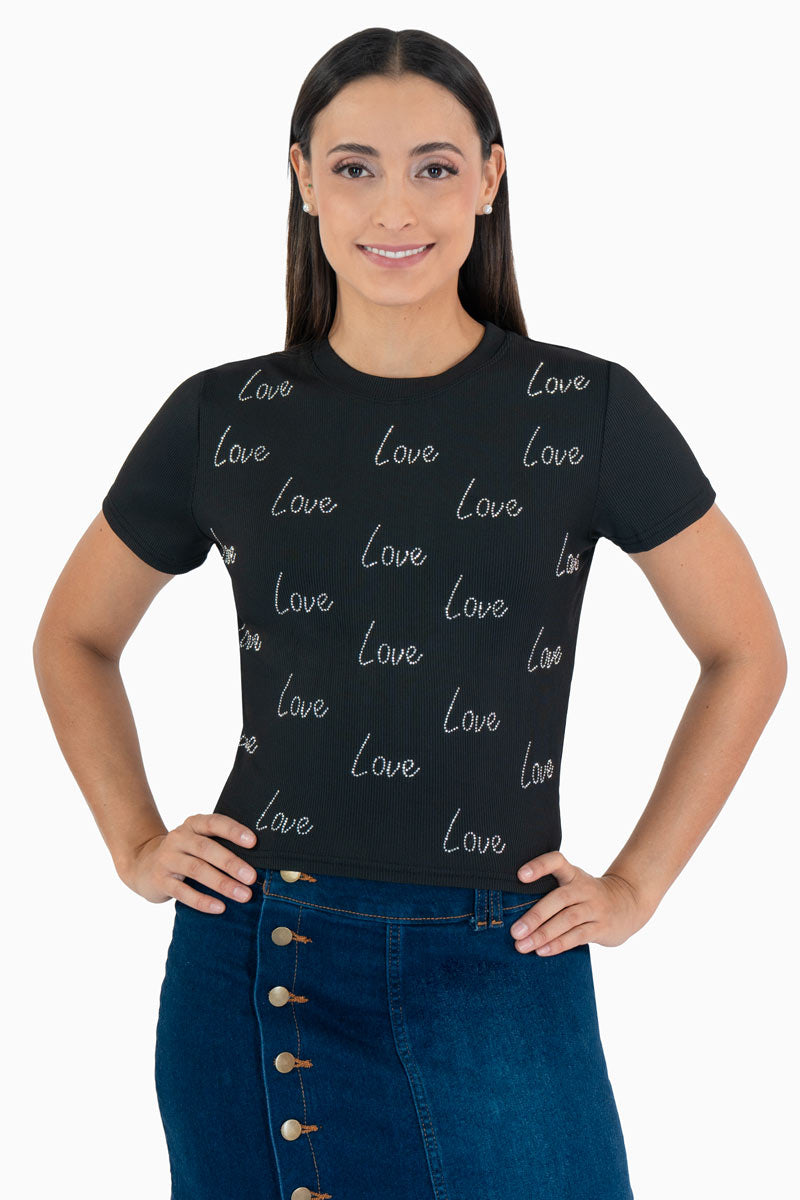 Playera manga corta con estampado "LOVE"