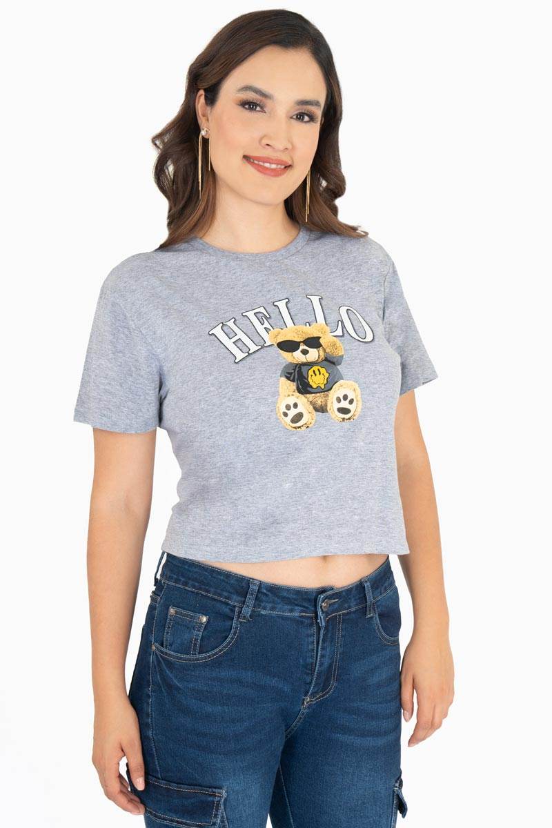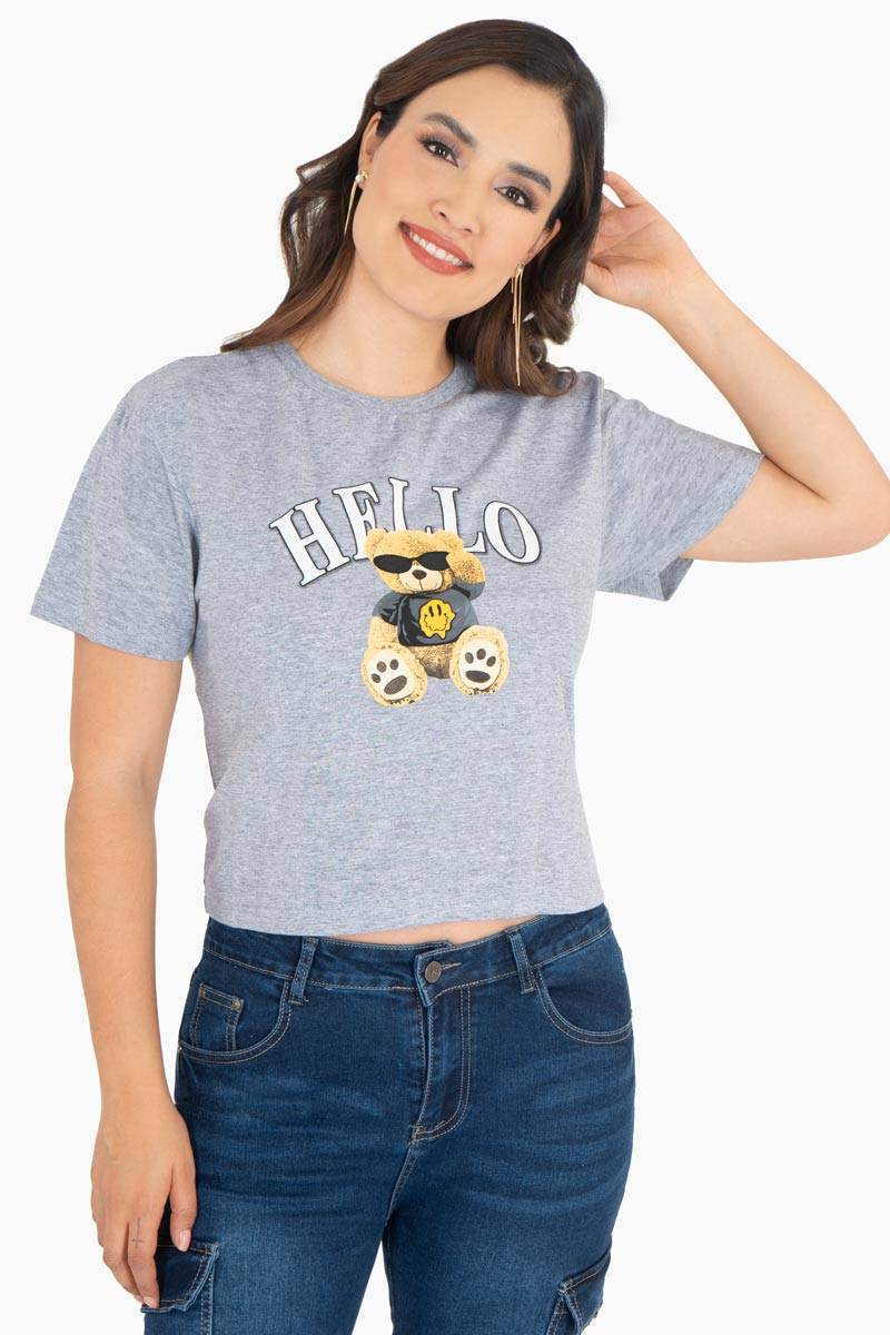 Playera juvenil con estampado hello fresca, cómoda y con estilo manga corta y cuello redondo.