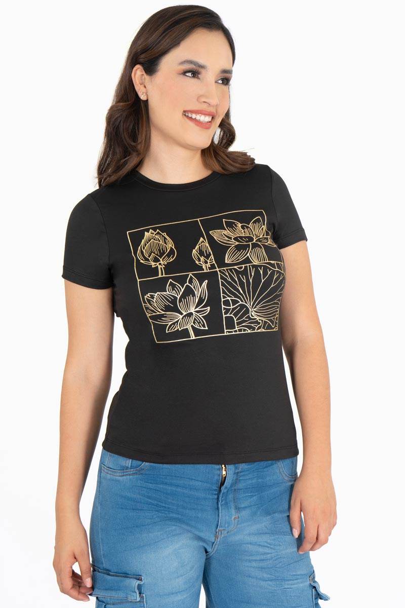 Playera Juvenil Manga Corta Con Estampado Floral