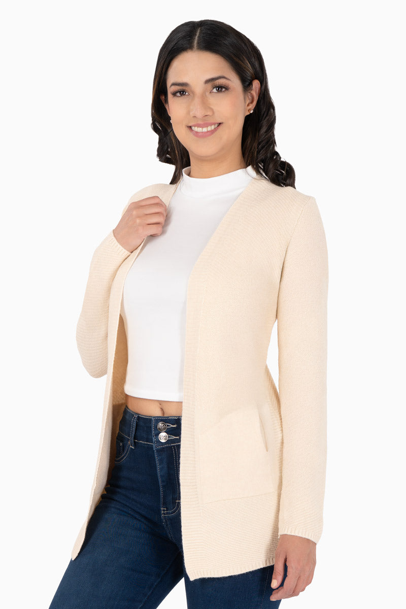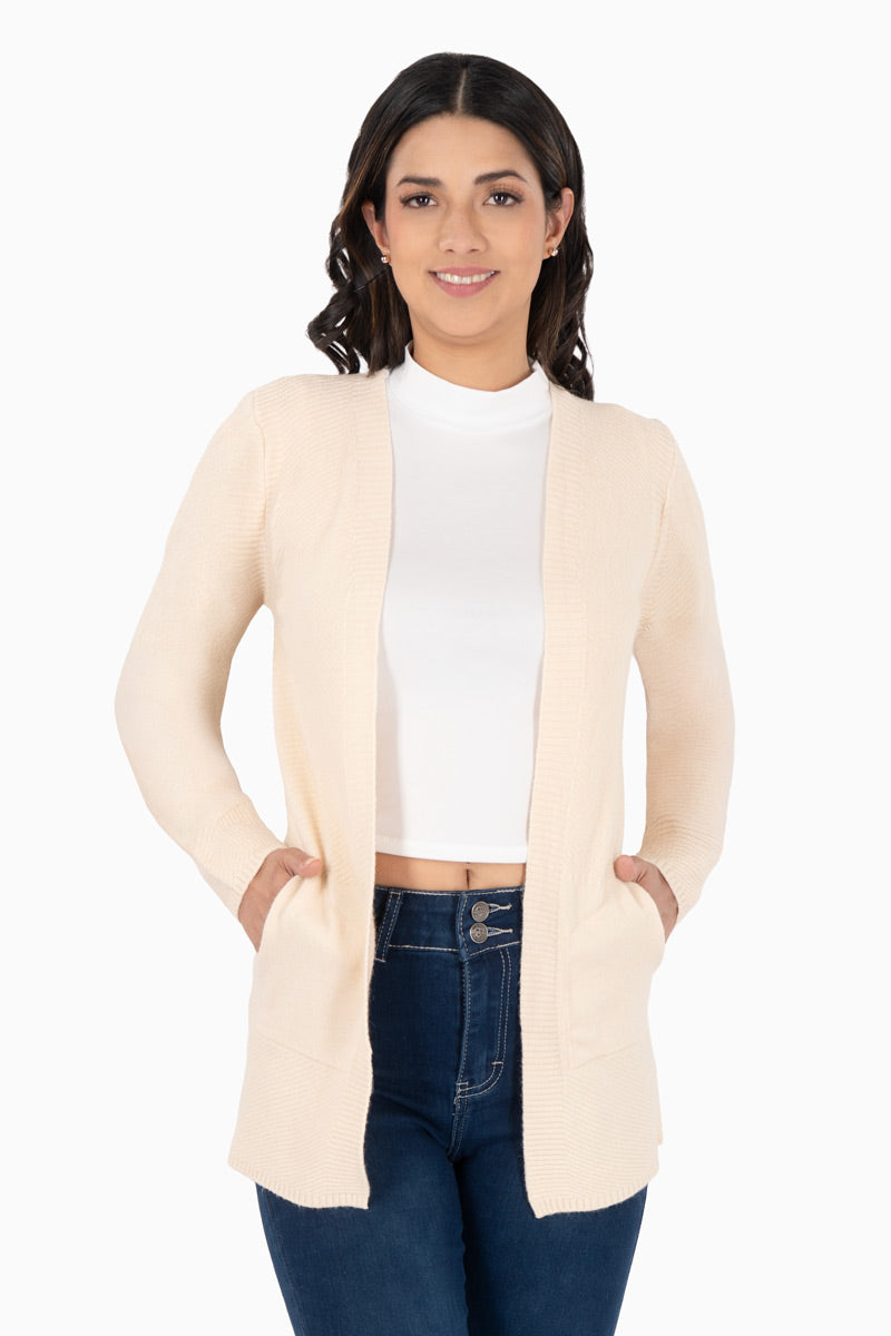 Este suéter abierto para mujer es la prenda perfecta para cualquier ocasión. Confeccionado en un suave y ligero tejido de punto, ofrece comodidad y estilo sin esfuerzo. Su diseño versátil permite combinarlo fácilmente con tus outfits favoritos, ya sea para un look casual o más elegante. Ideal para las temporadas de entretiempo, este suéter se convertirá en un básico imprescindible en tu armario. ¡No te quedes sin el tuyo y añade un toque de calidez y elegancia a tu vestuario!