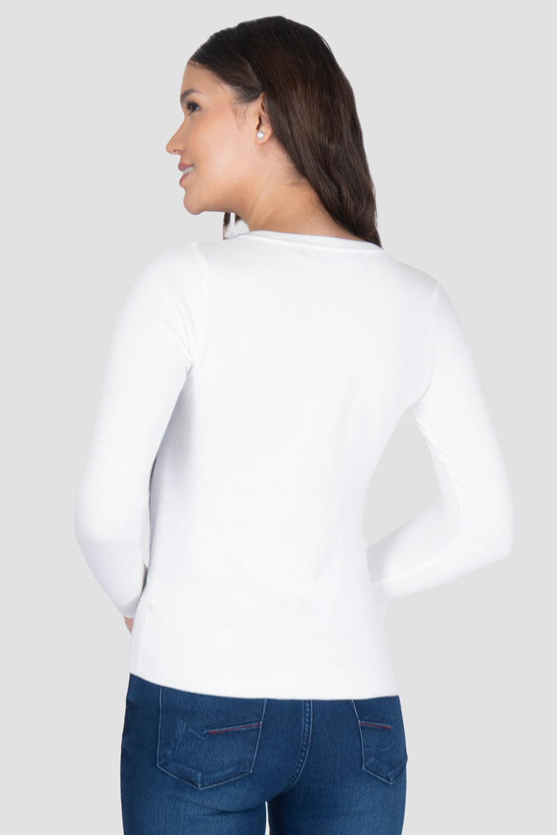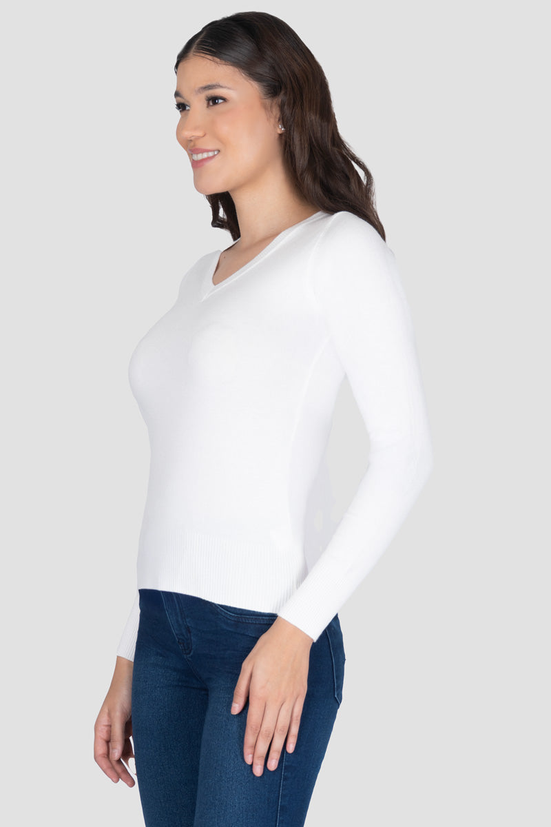 Descubre la comodidad y el estilo con nuestro suéter de cuello en V, confeccionado en un tejido suave y elástico que se adapta a tu figura. Perfecto para cualquier ocasión, este suéter es ideal para crear looks casuales o más elegantes. Su diseño atemporal y versátil te permitirá combinarlo fácilmente con jeans, faldas o pantalones de vestir. No te pierdas la oportunidad de añadir esta prenda esencial a tu guardarropa y disfrutar de su confort durante todo el día.