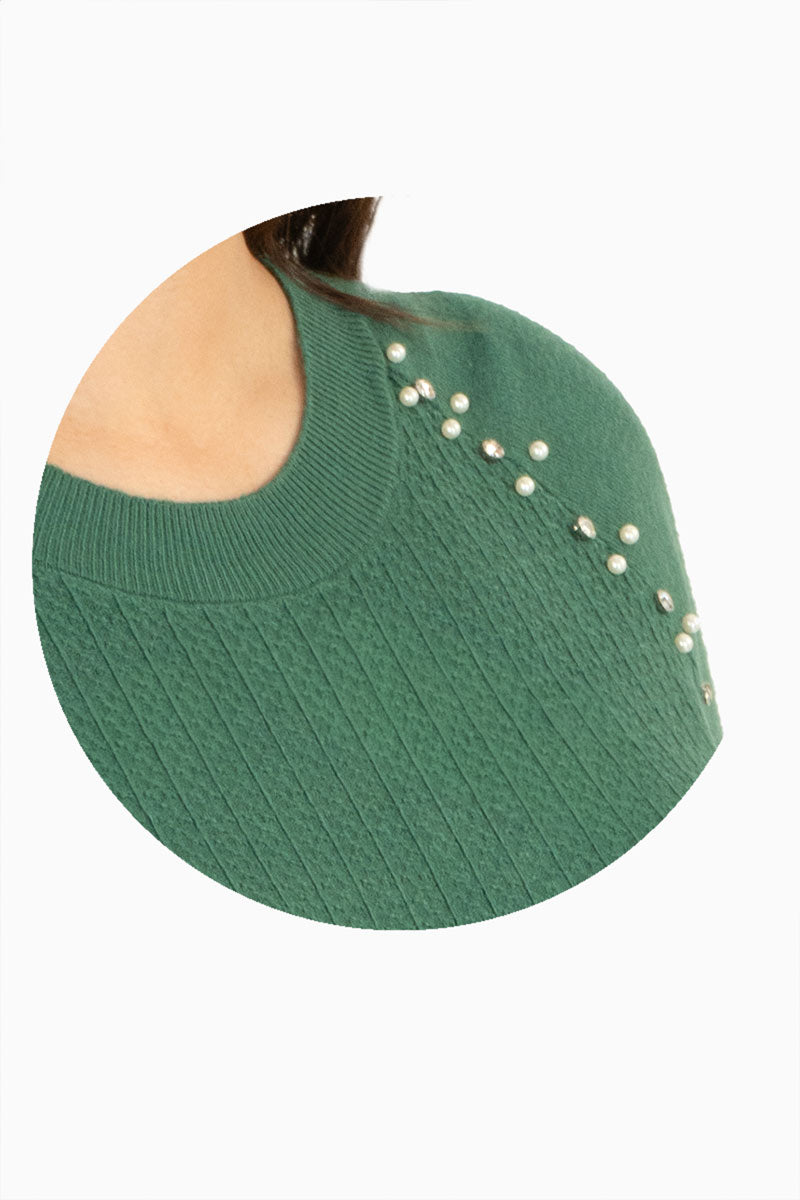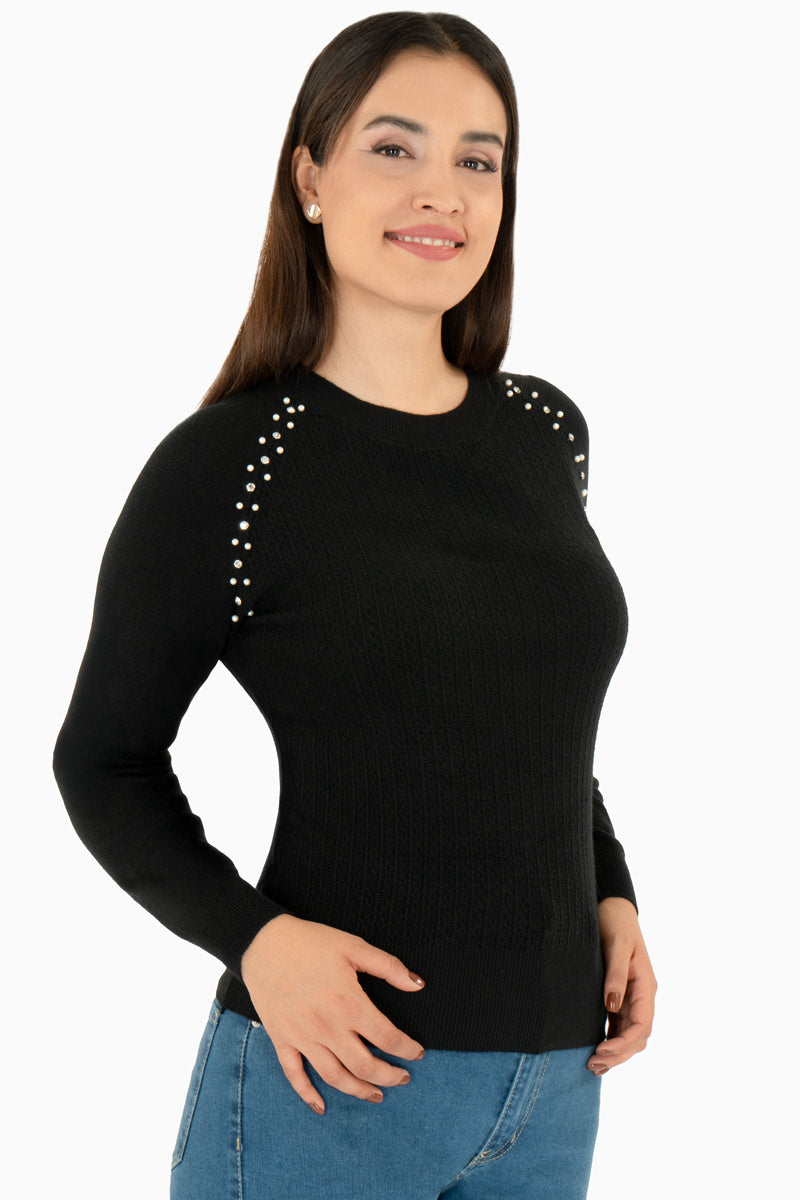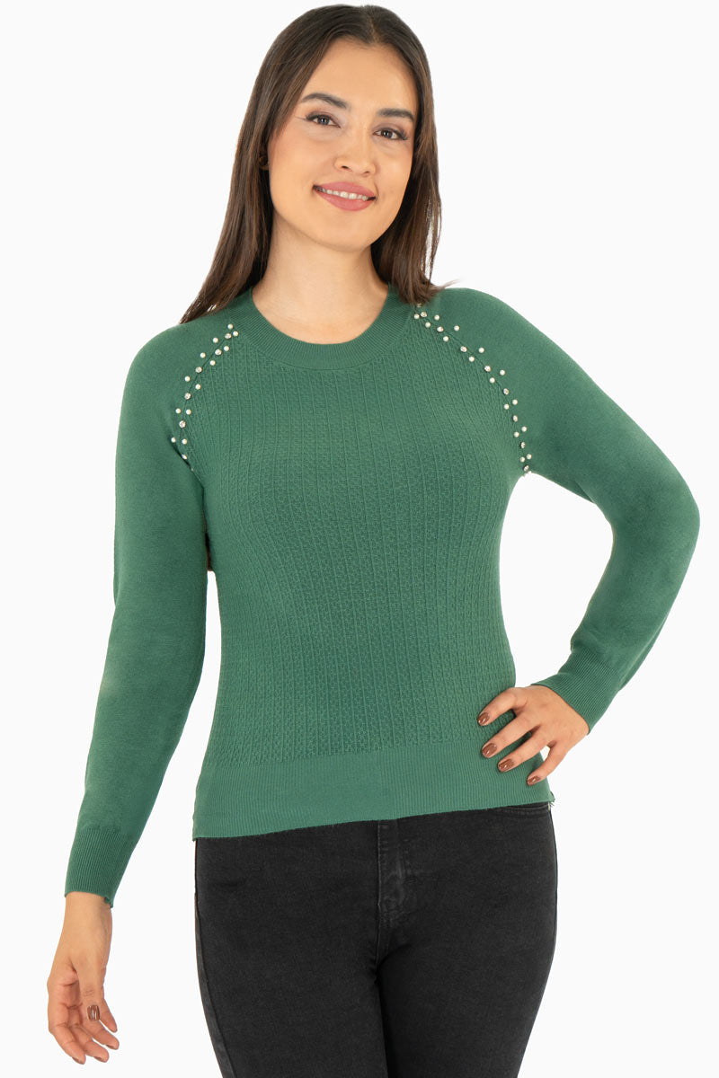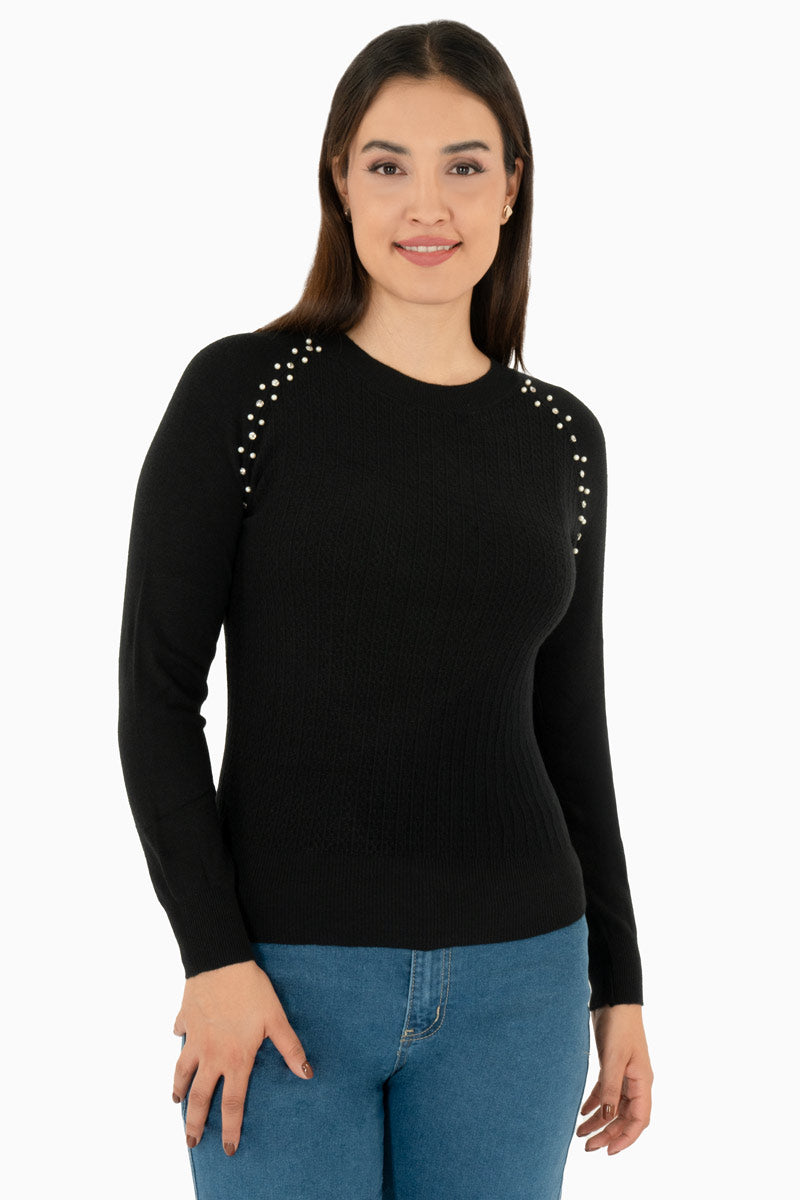 El suéter con perlas para mujer es la prenda ideal para combinar comodidad y estilo en un solo look. Su diseño de manga larga con detalle de perlas en los hombros aporta un toque elegante y femenino, perfecto para destacar en reuniones, salidas casuales o eventos especiales.