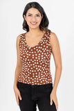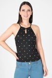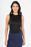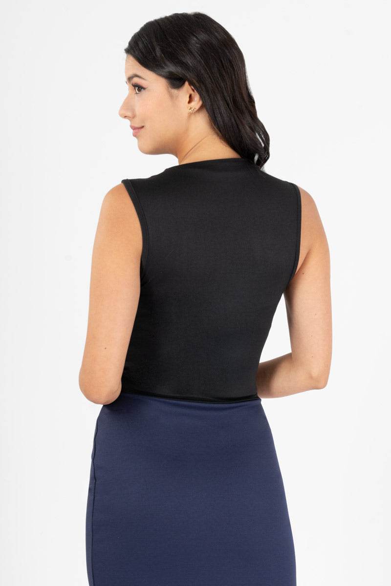 Playera cuello alto sin mangas lisa.