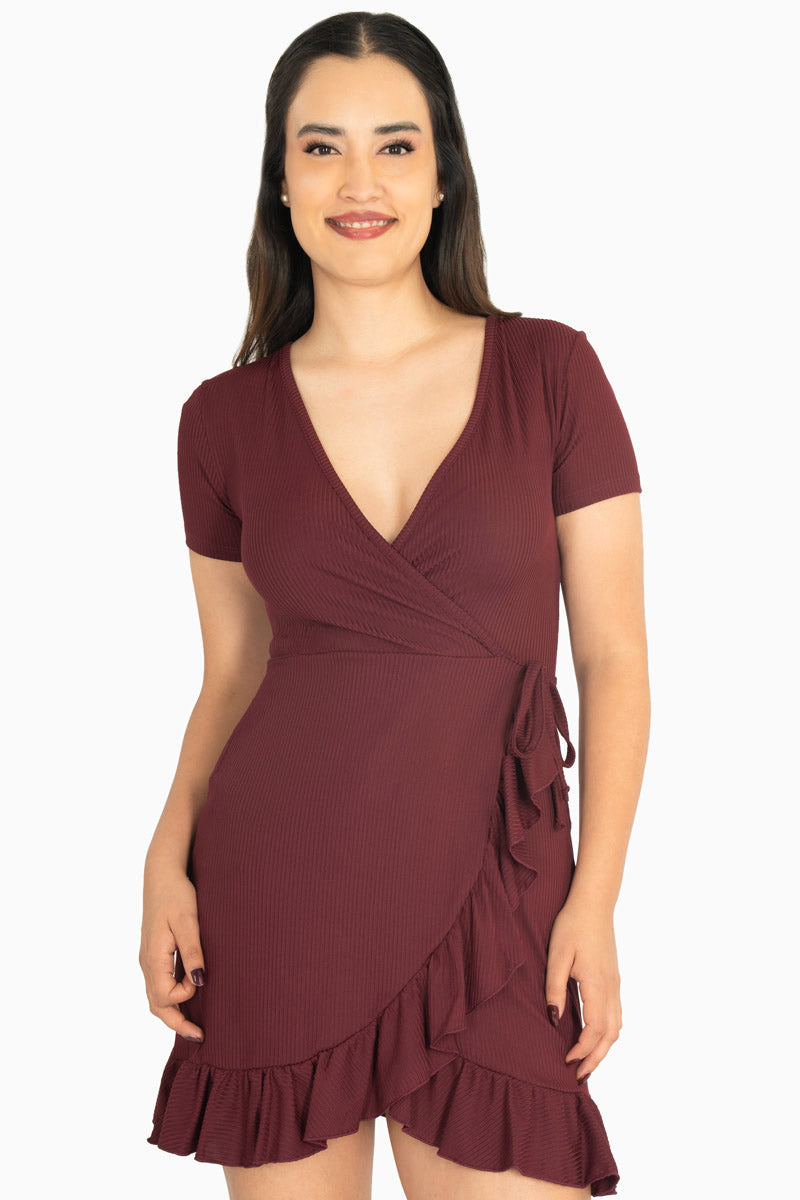 Este vestido corto presenta un diseño cruzado con escote en V que realza la silueta de forma natural. Su falda con ligero olan aporta movimiento y un toque femenino, ideal para eventos, citas o salidas especiales donde buscas verte elegante y moderna.