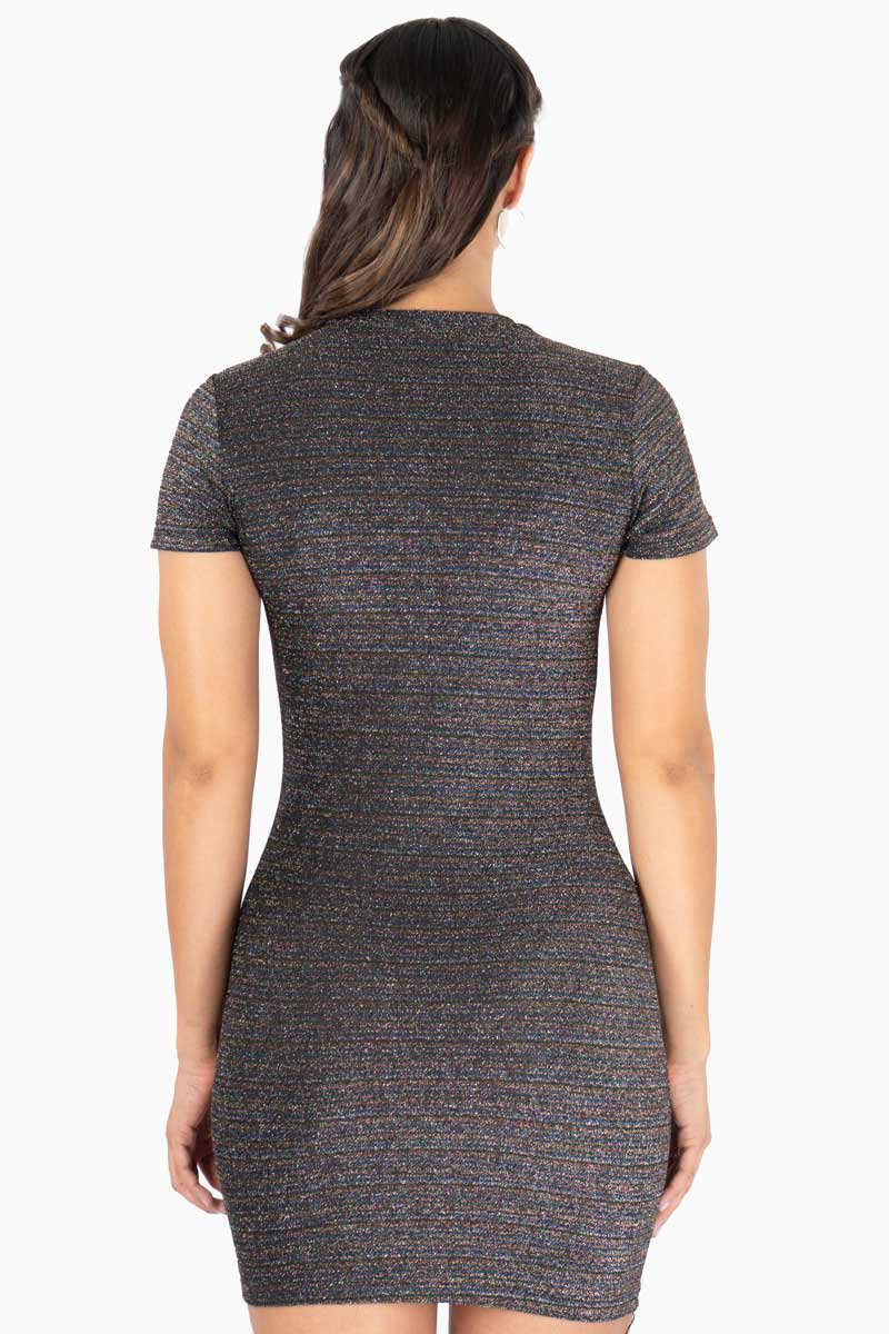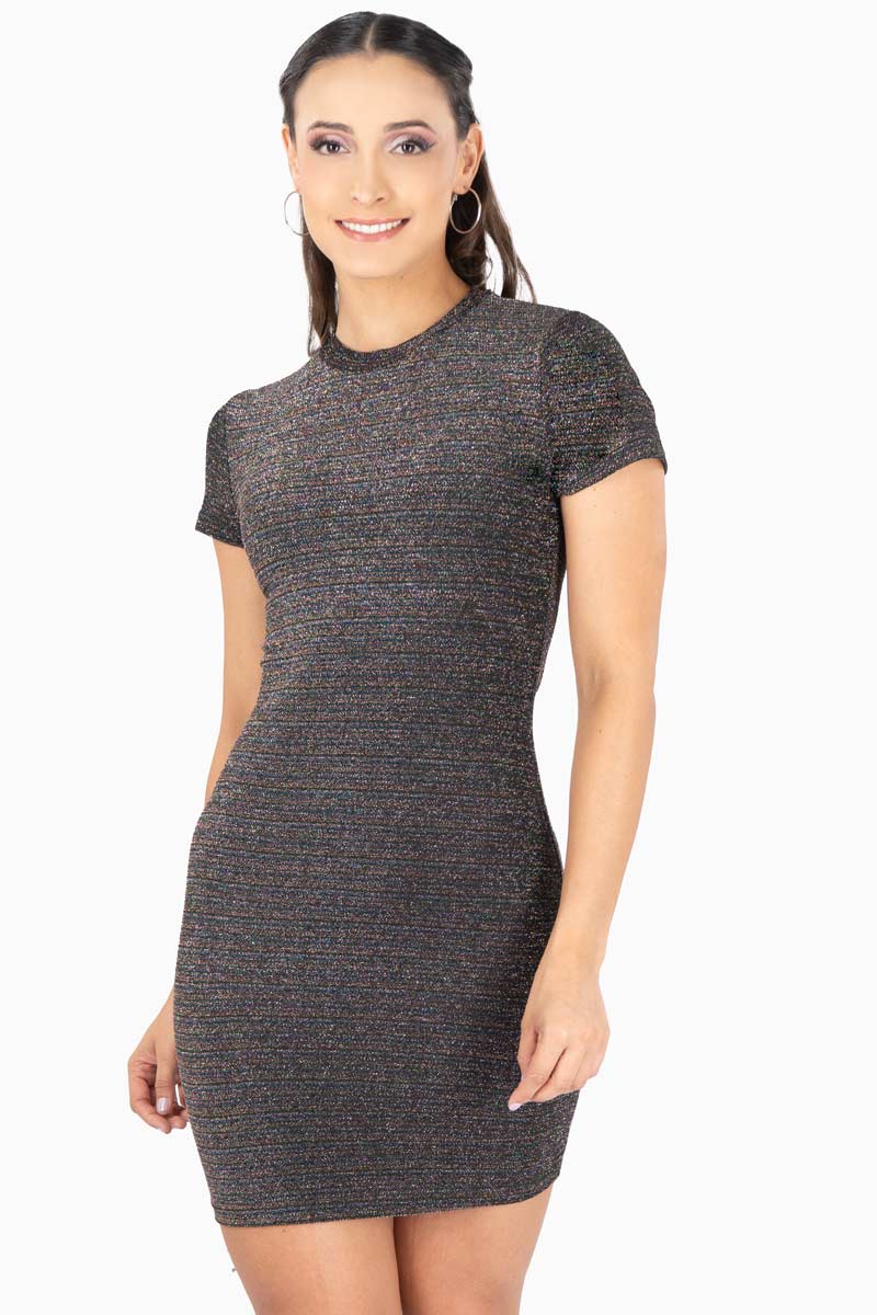 Vestido para Mujer de Punto con Brillos y Manga Corta