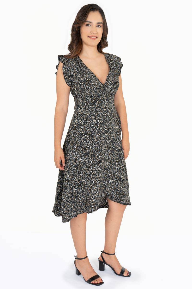 Resalta tu estilo con este vestido cruzado estampado de manga corta con cinto, una prenda versátil y femenina que estiliza la silueta. Su diseño ligero es perfecto para looks casuales o semi formales, ideal para cualquier temporada.