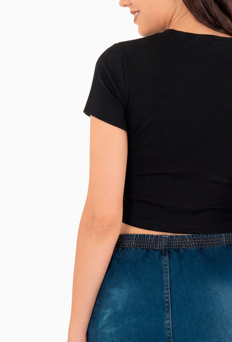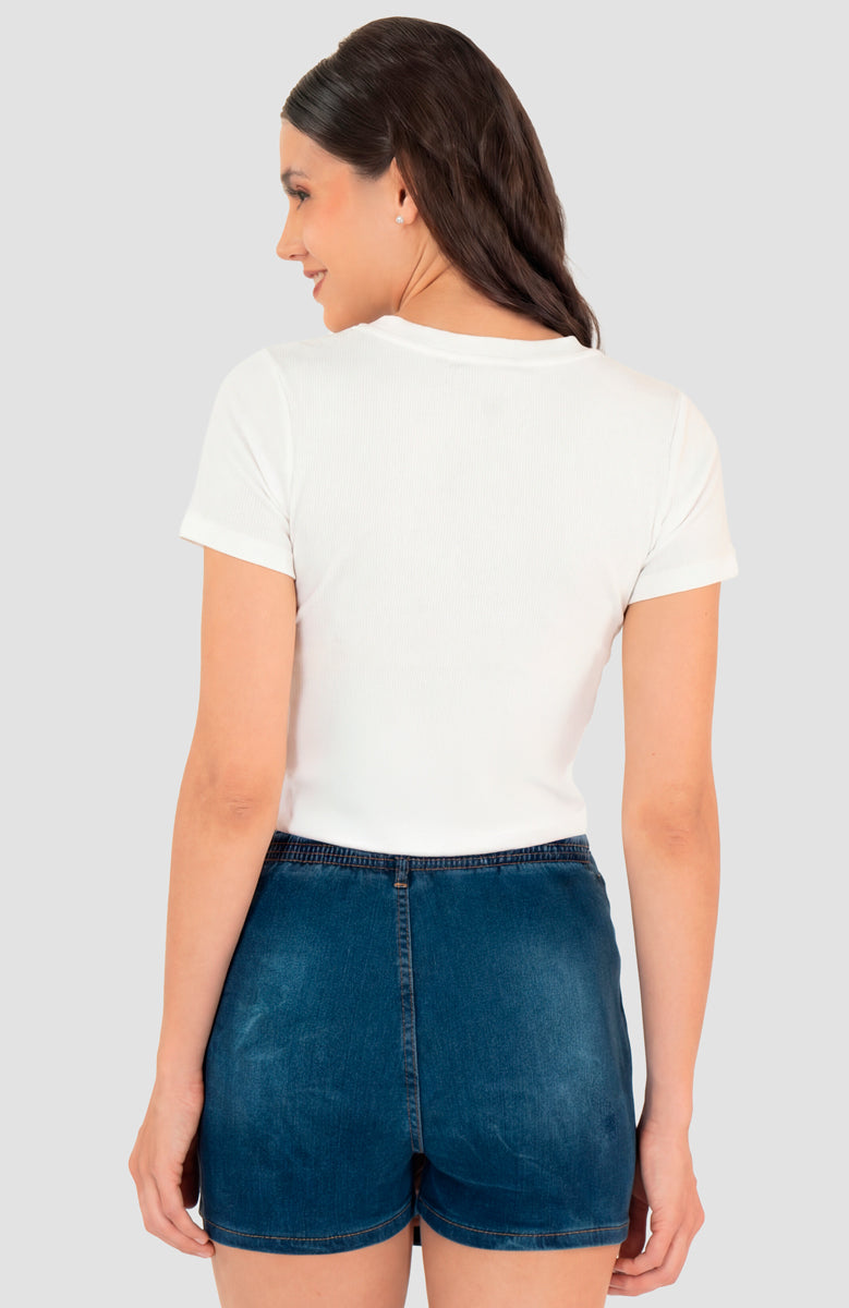 Playera manga corta con detalle de flores