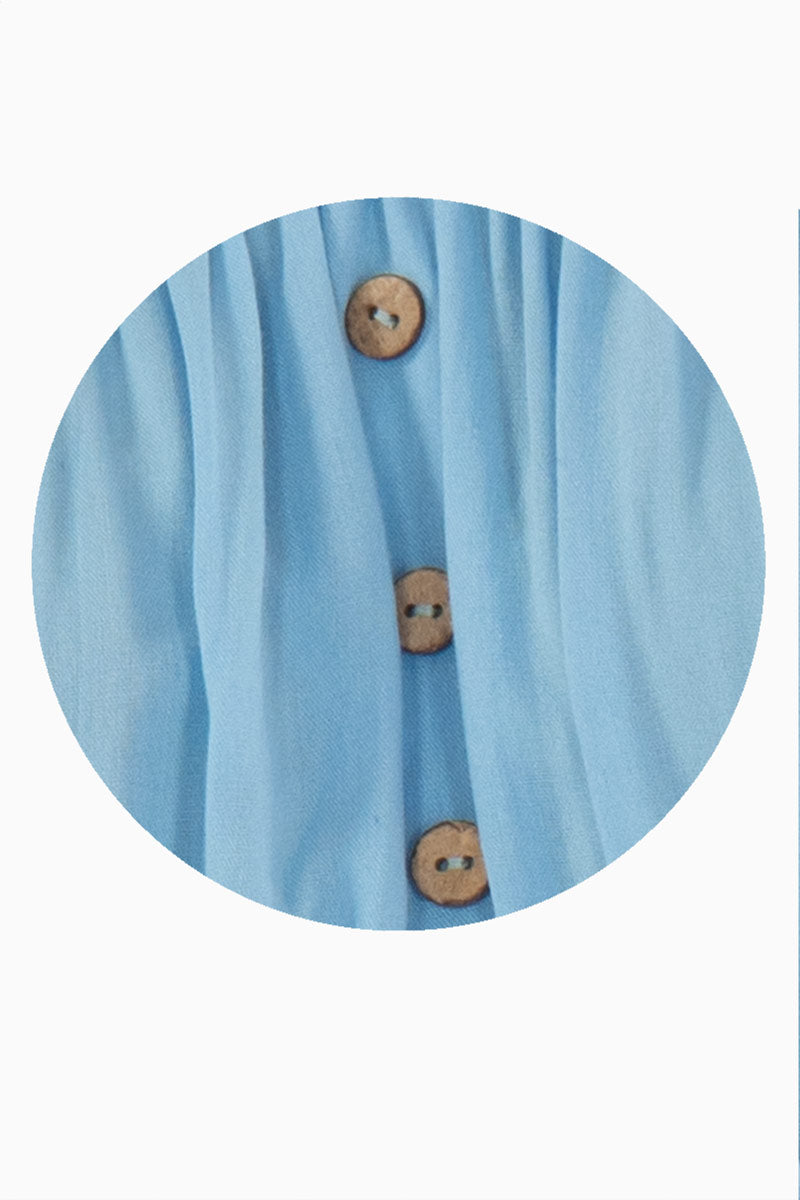 Vestido corto para mujer con manga abullonada y escote cuadrado. Diseño femenino y fresco con botones frontales y falda con vuelo, perfecto para primavera, verano o eventos casuales.