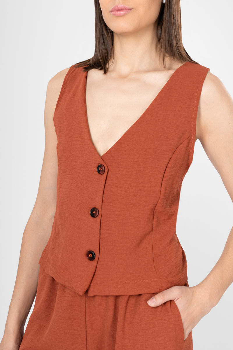 Conjunto de pantalón con bolsas y chaleco.