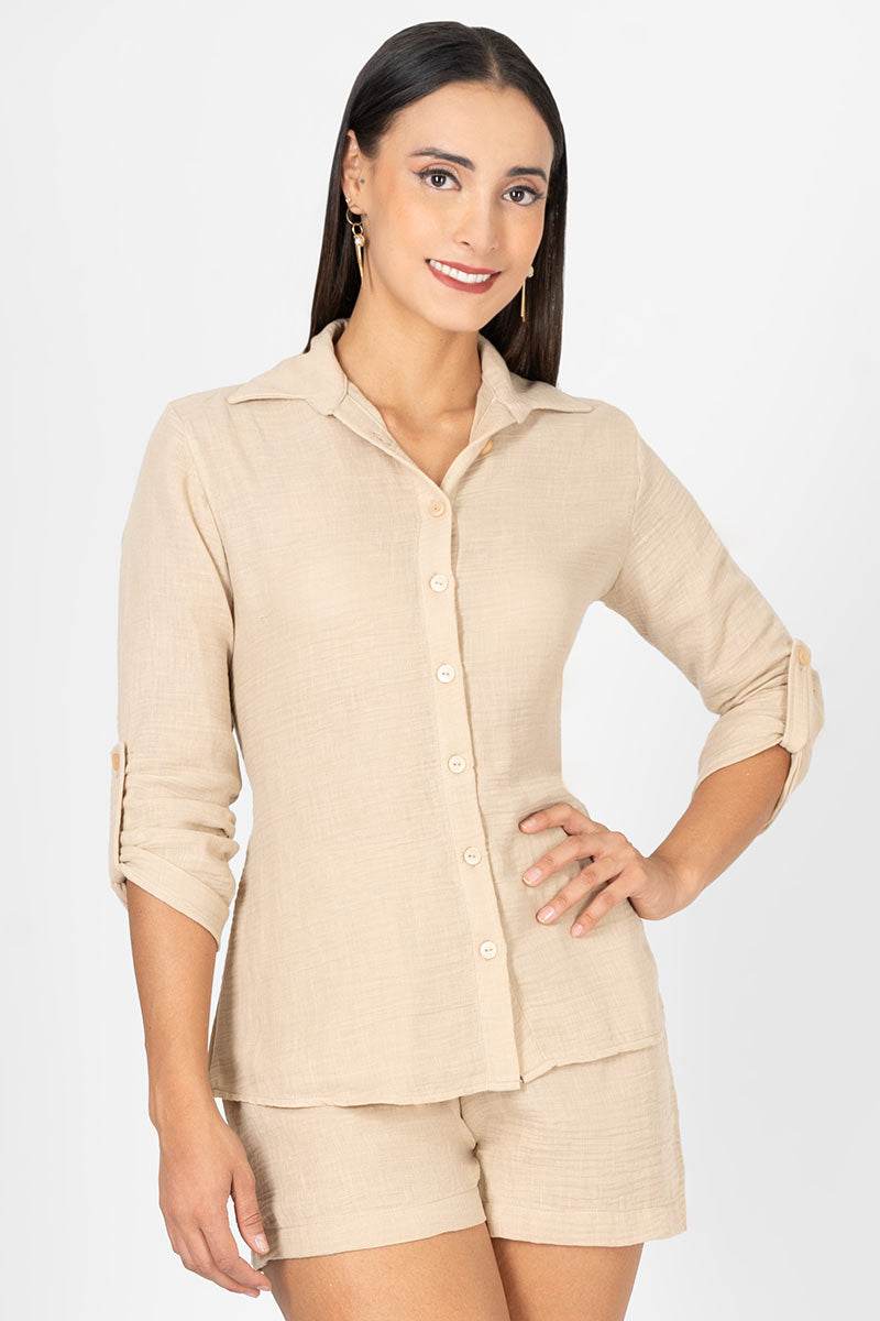 Conjunto camisa con ajuste en manga y short