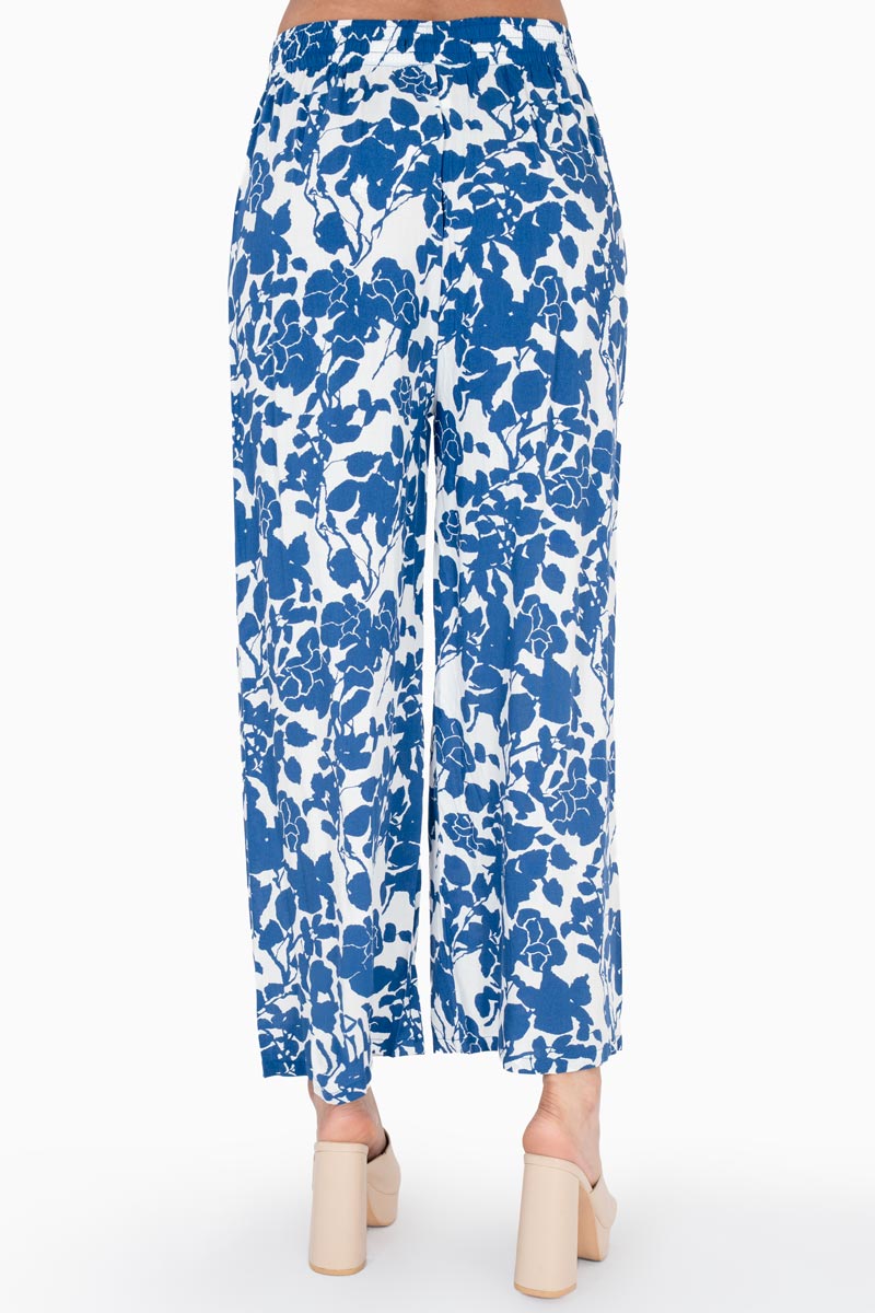 Pantalón para mujer con estampado floral. Diseño de pierna amplia y caída ligera que aporta frescura y movimiento, ideal para outfits relajados y femeninos.