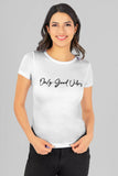 Playera con estampado only good vibes, manga corta y cuello redondo.