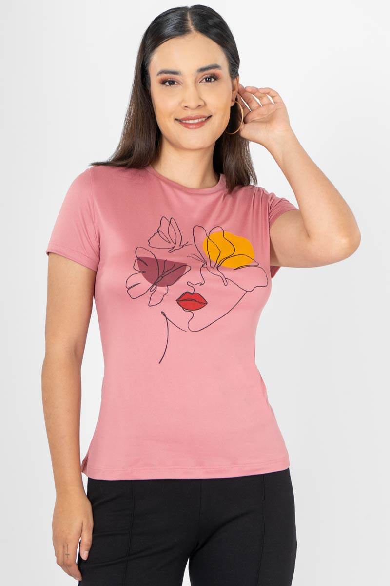 Playera manga corta con estampado de cara con mariposas.