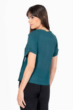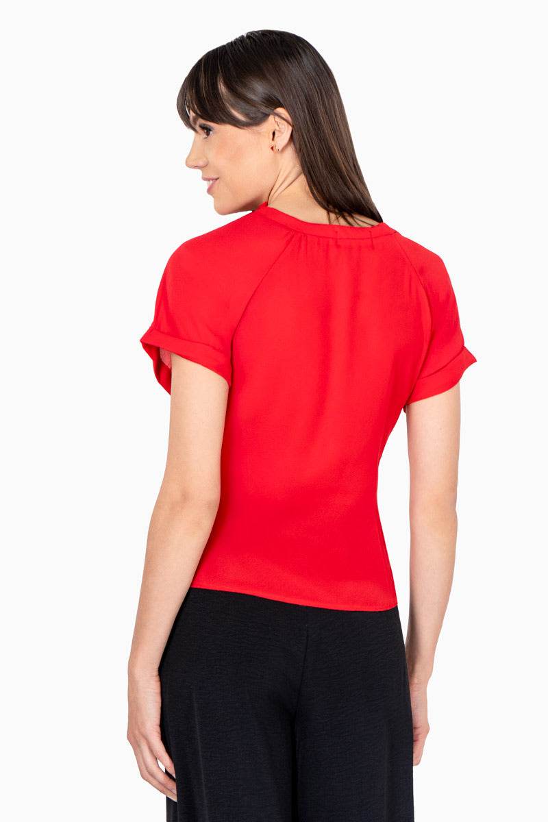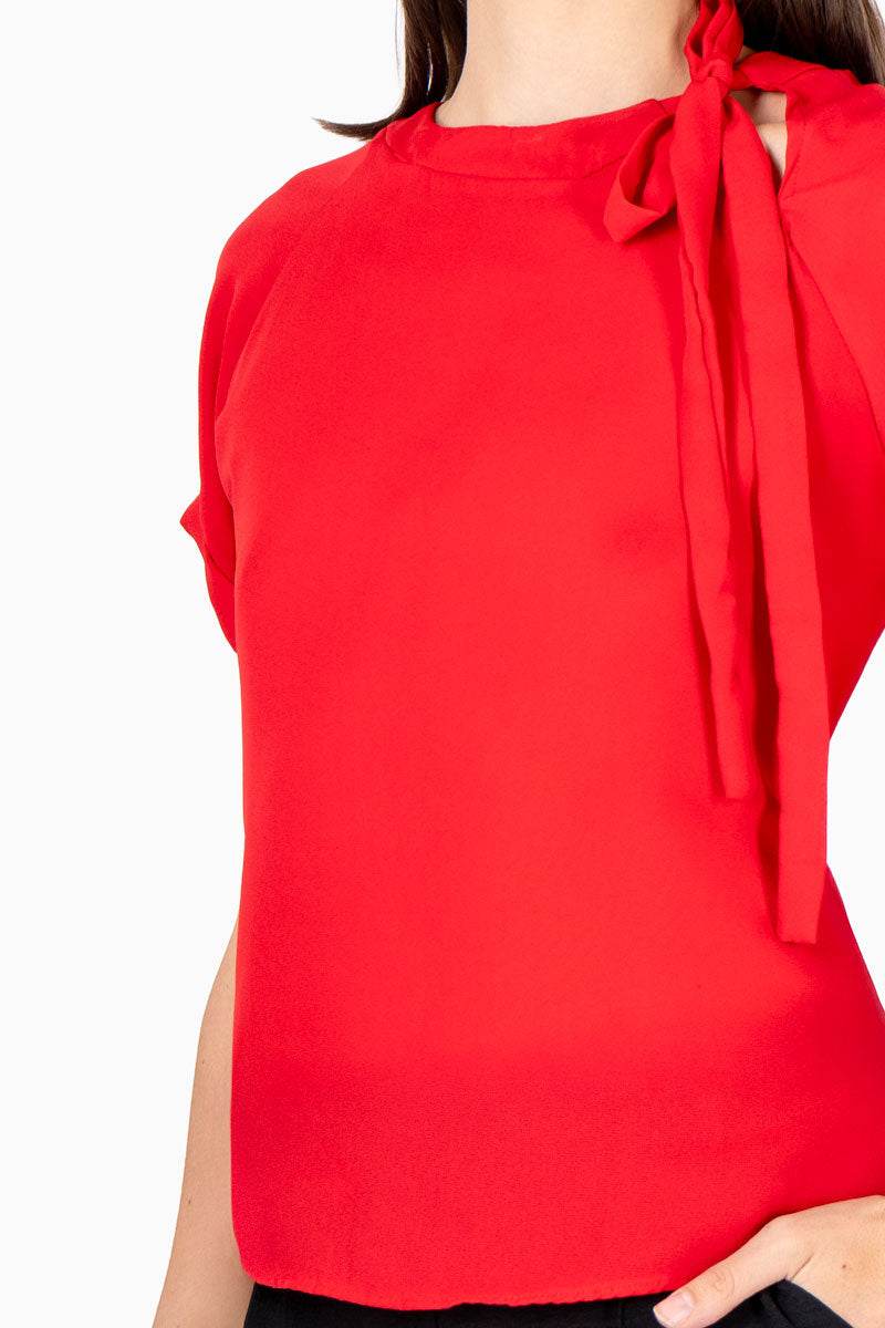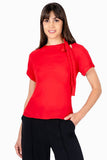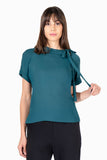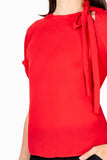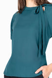 Blusa lisa, manga corta, escote redondo con amarre en cuello.