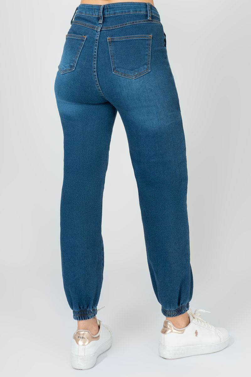 Jeans tipo jogger con bolsas con elástico en tobillo y bolsas de parche.