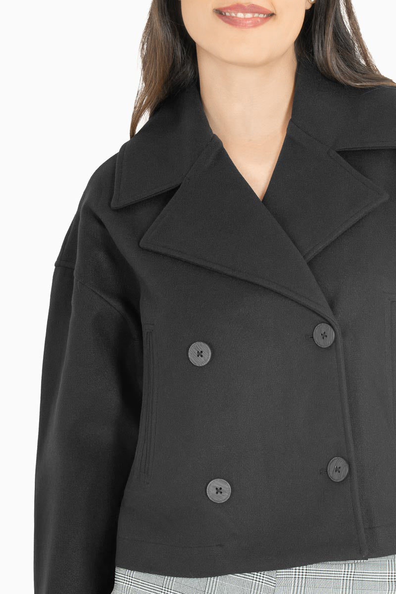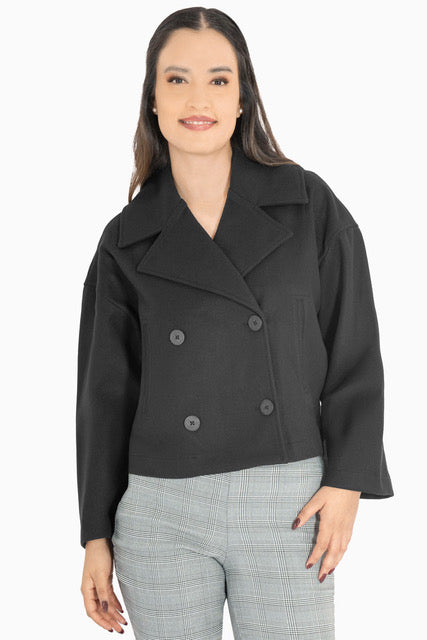 Abrigo corto con cruce y bolsillos